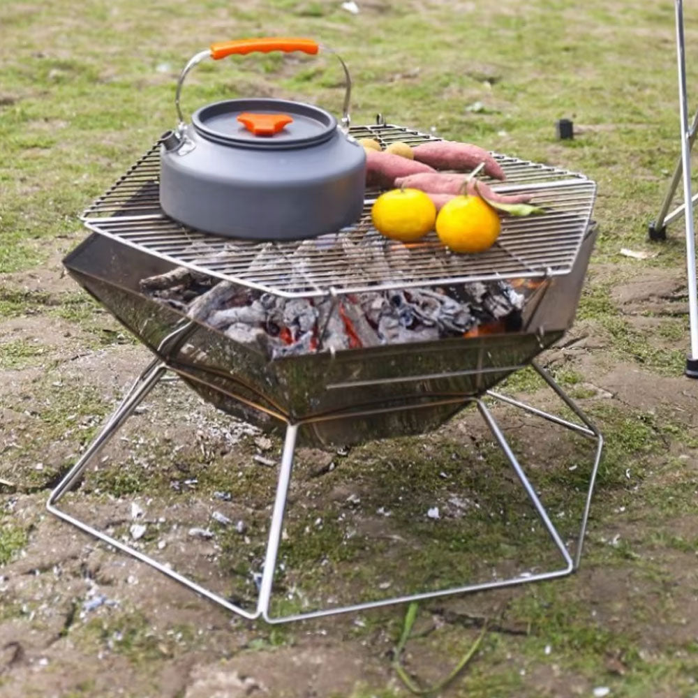 شواية خارجية قابلة للطي من الفولاذ المقاوم للصدأ، رف شواء قابل للفصل، موقد فحم، شواية خفيفة الوزن قابلة للطي