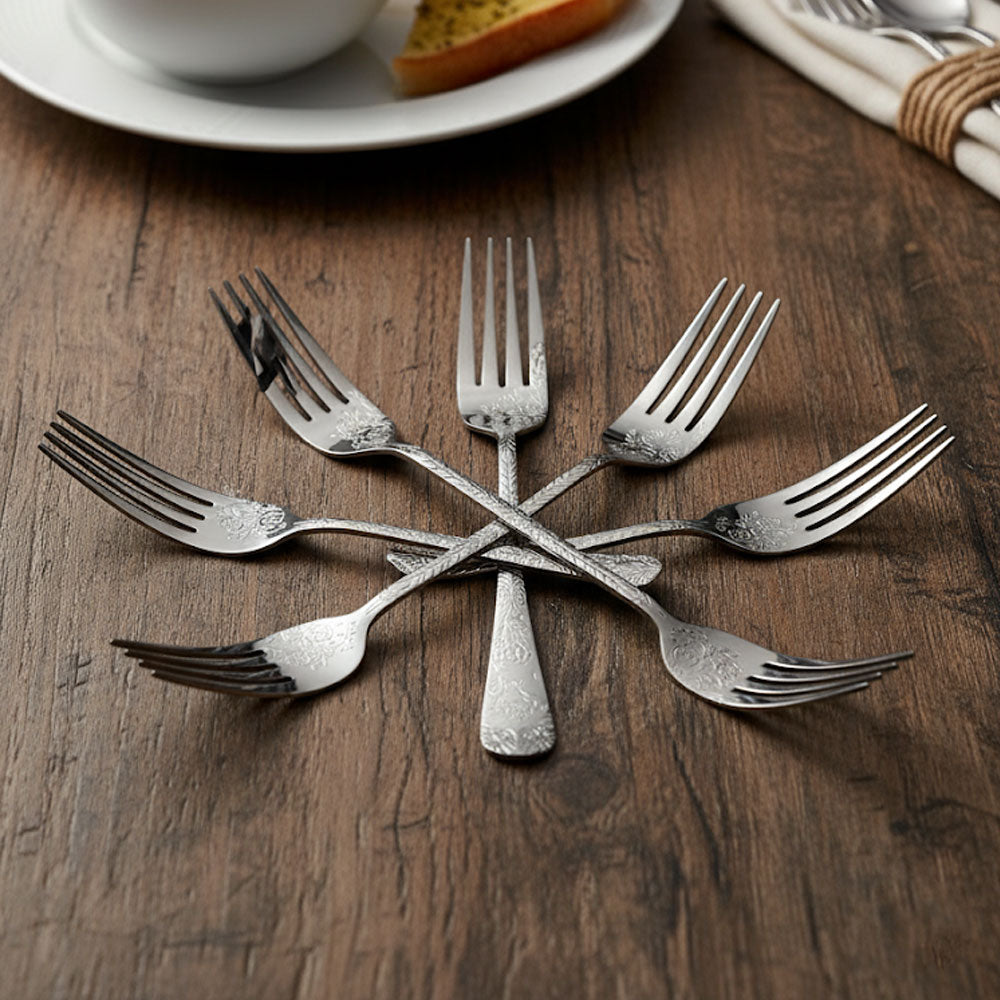 - 6 شوكة مائدة فاخرة من الستانلس ستيل.