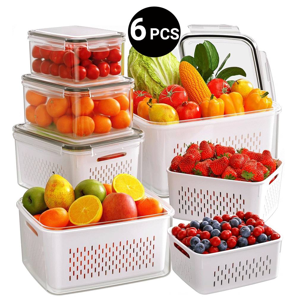 Winproper 6 قطع حاويات فواكه كبيرة للثلاجة مع مصفاة قابلة للإزالة