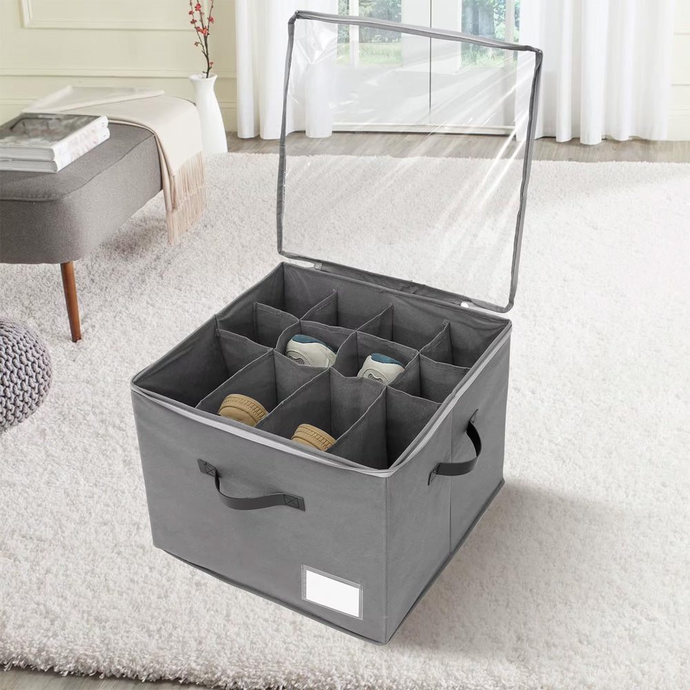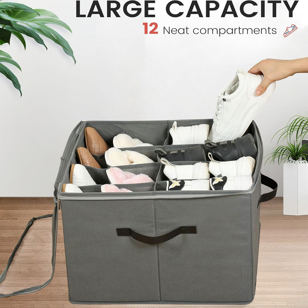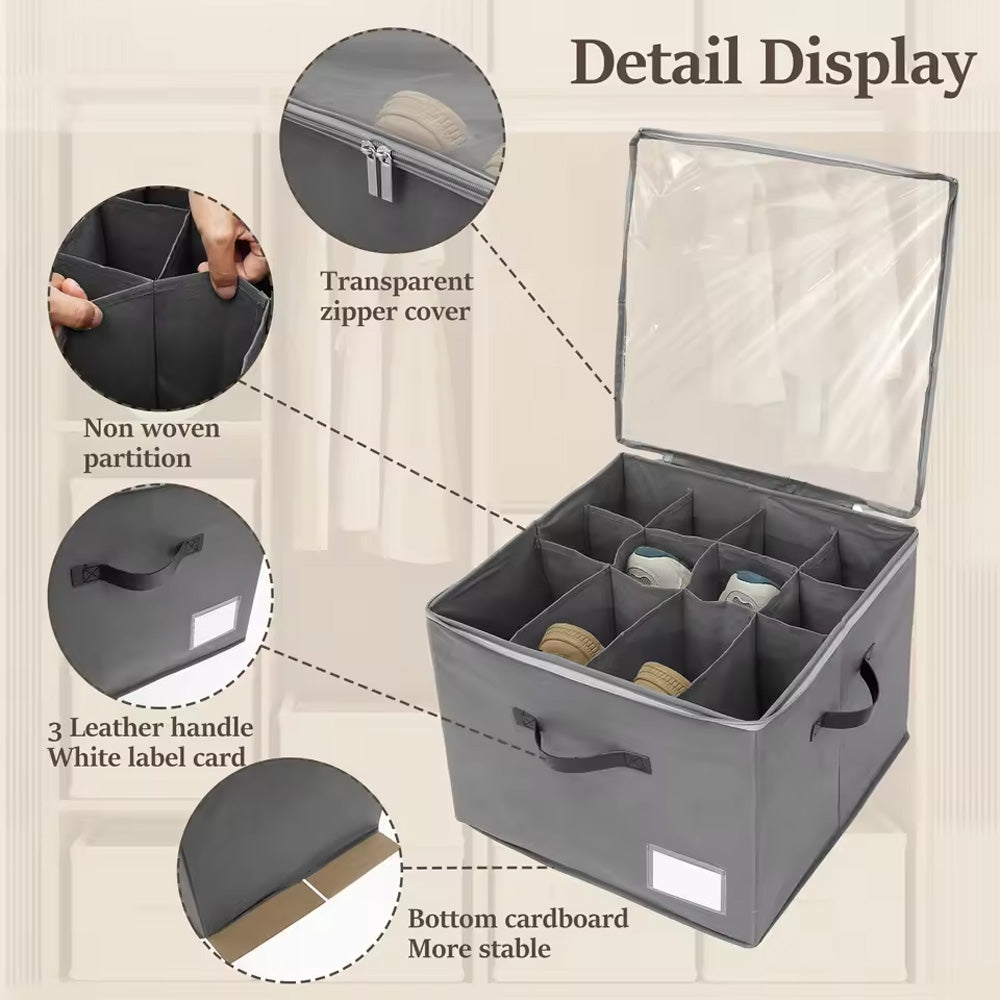 صندوق تخزين أحذية مقاوم للغبار مكون من 12 زوجًا مع غطاء شفاف بسحاب