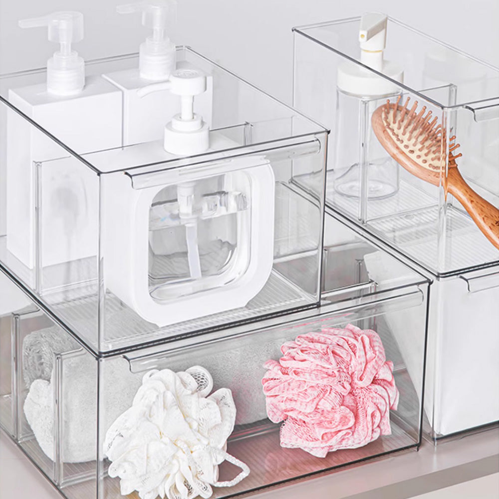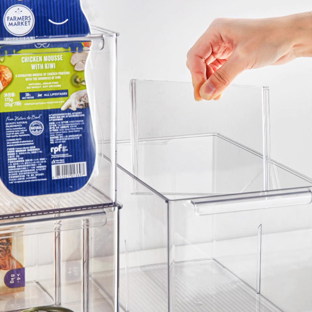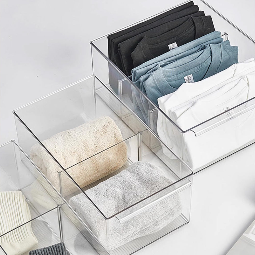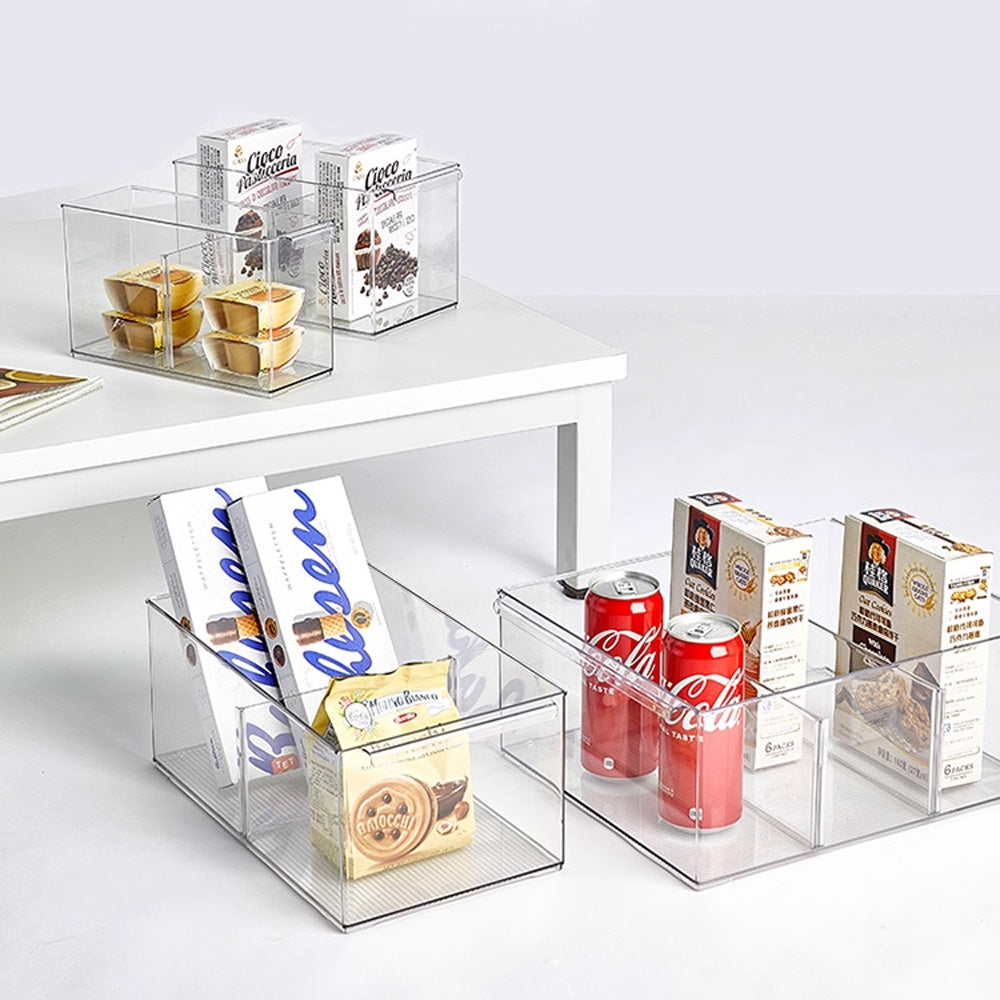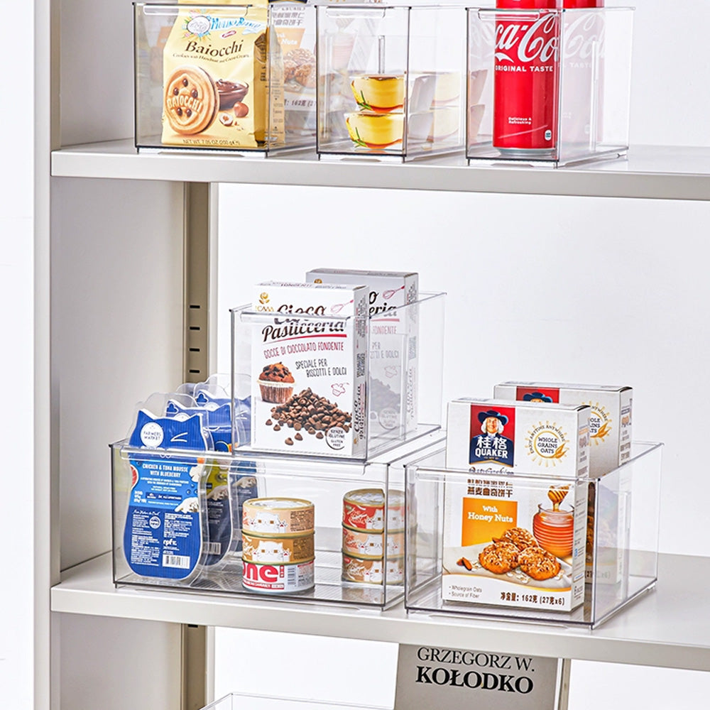 حافظ على تنظيم أغراضك مع صندوق التخزين الشفاف متعدد الاستخدامات هذا، والمتوفر بمقاسين XL وM. مثالي لتنظيم مجموعة متنوعة من الأغراض، مثل لوازم المكتب، وأدوات المطبخ، والكتب، وحتى مستحضرات التجميل. يتميز ببلاستيك متين خالٍ من مادة BPA، وفواصل قابلة للتعديل، مما يُبقي أغراضك منفصلة ومرتبة، ويسهل الوصول إليها. تصميمه الشفاف يضمن لك رؤية محتوياته بسرعة، مما يجعله مثاليًا لأي مساحة، من منزلك إلى مكتبك أو مخزنك.