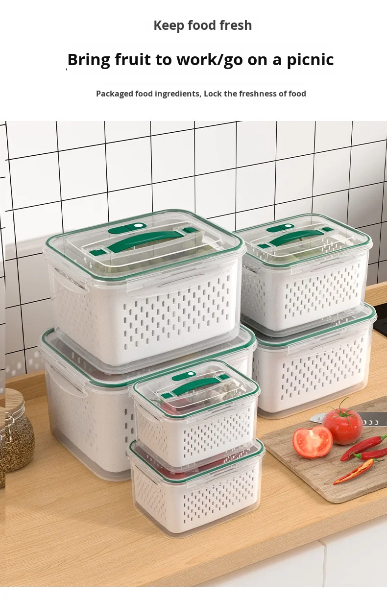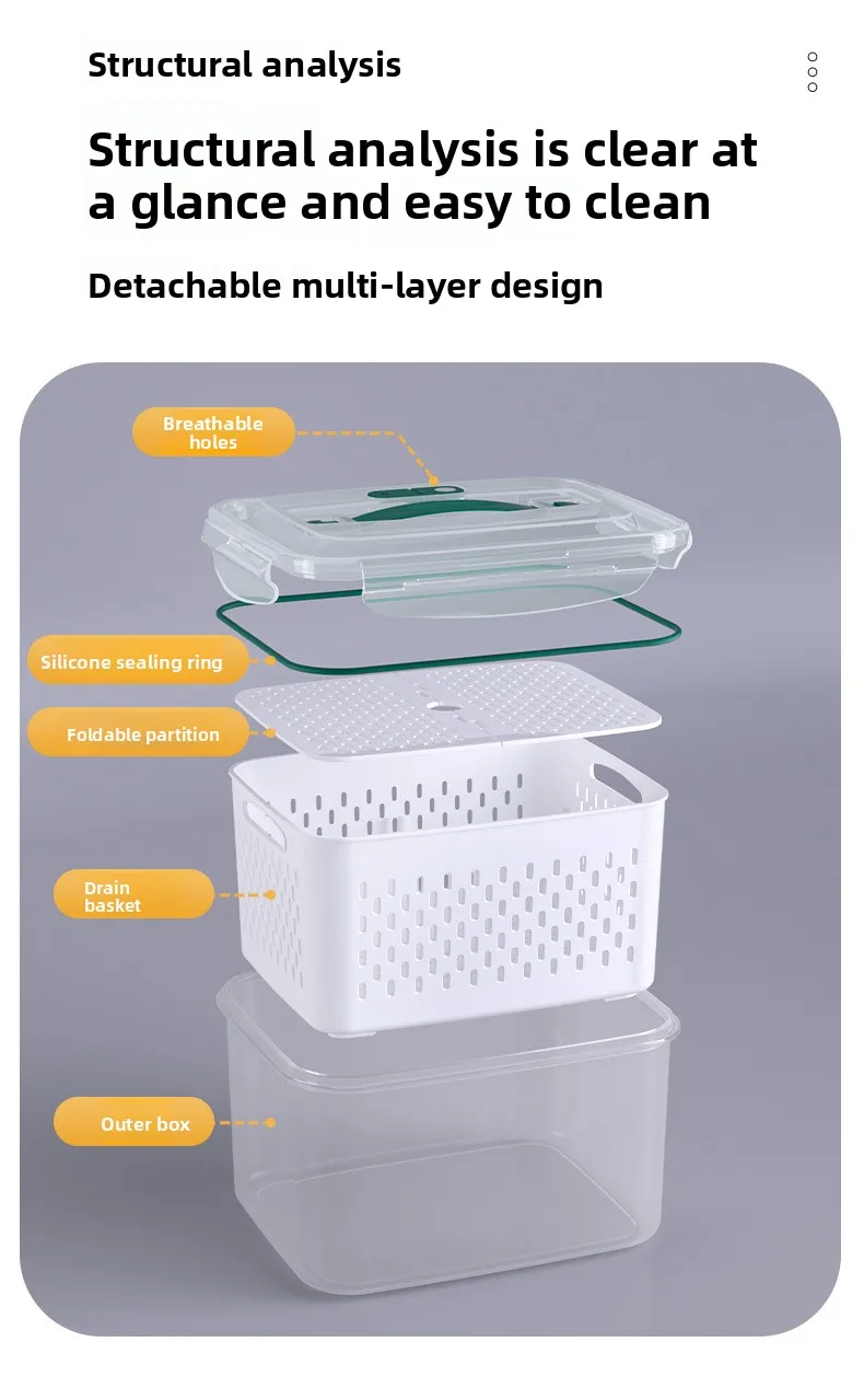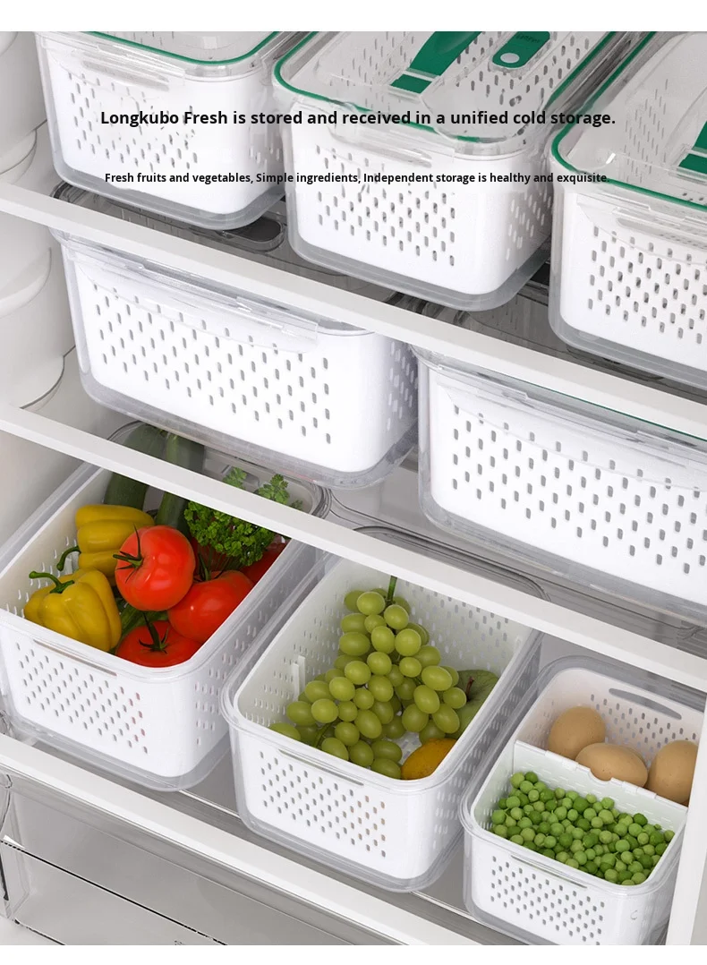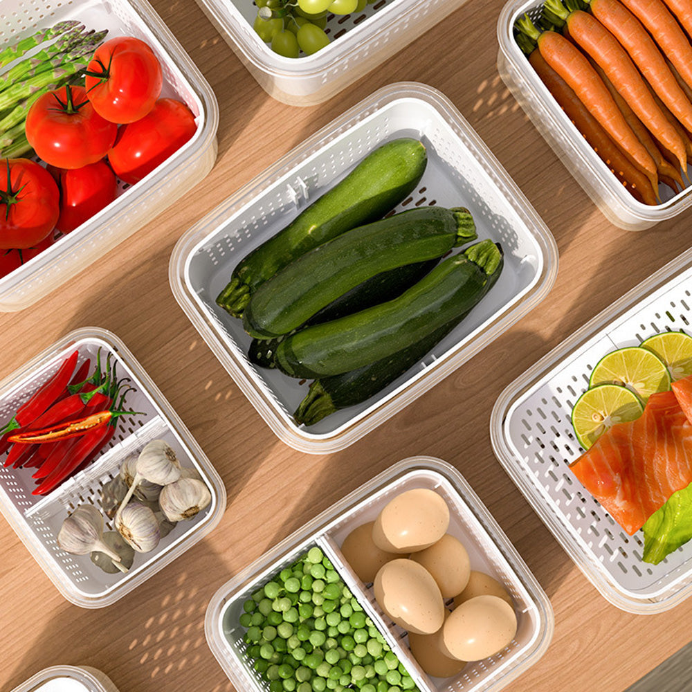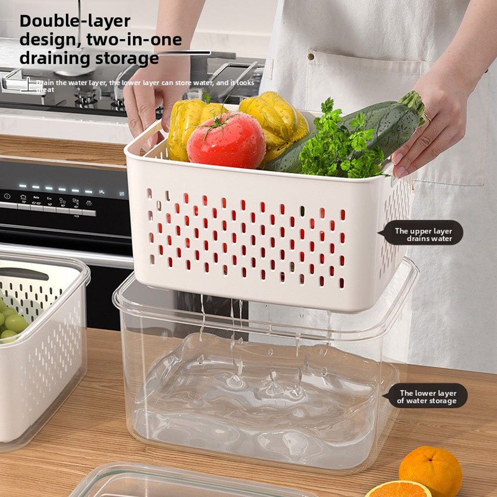 حافظ على نضارة طعامك لفترة أطول مع صندوق التخزين المحكم هذا، بتصميمه المزدوج الطبقات مع سلة تصريف قابلة للرفع. يحتوي الغطاء المحكم على زر صمام هواء لسهولة تحرير الضغط، مما يجعله مثاليًا لتخزين الفواكه والخضراوات واللحوم وبقايا الطعام. آمن للاستخدام في الميكروويف لإذابة الثلج، والتخزين في الفريزر، ومثالي لتنظيم الثلاجة يوميًا.
