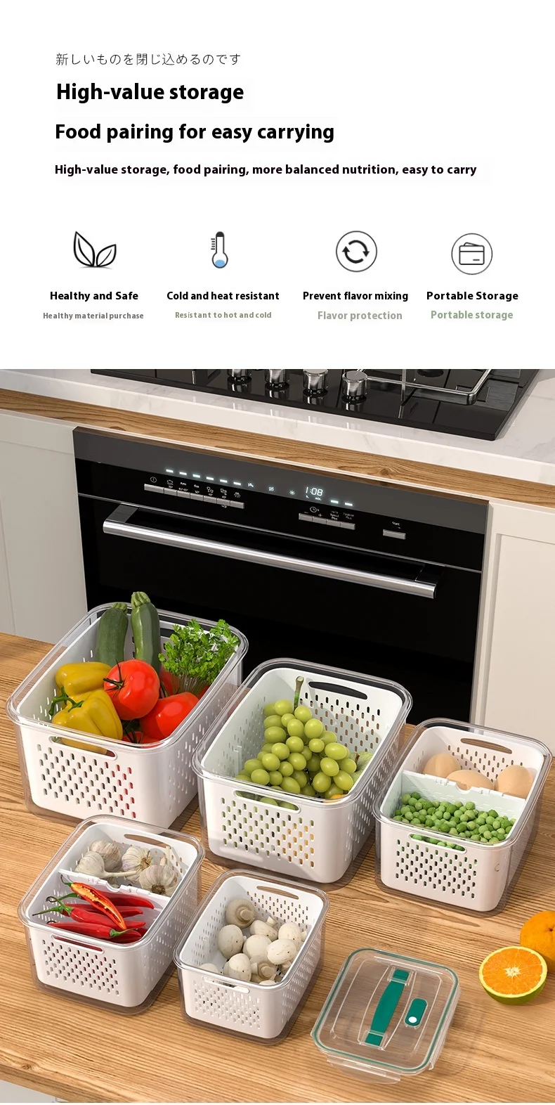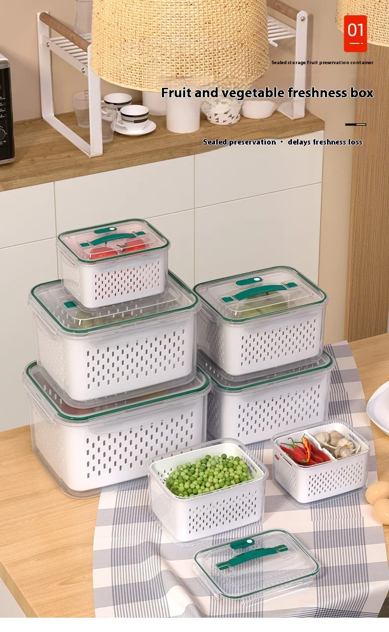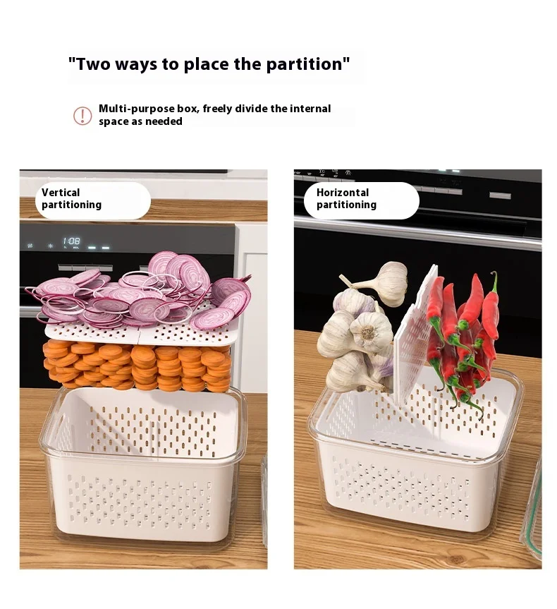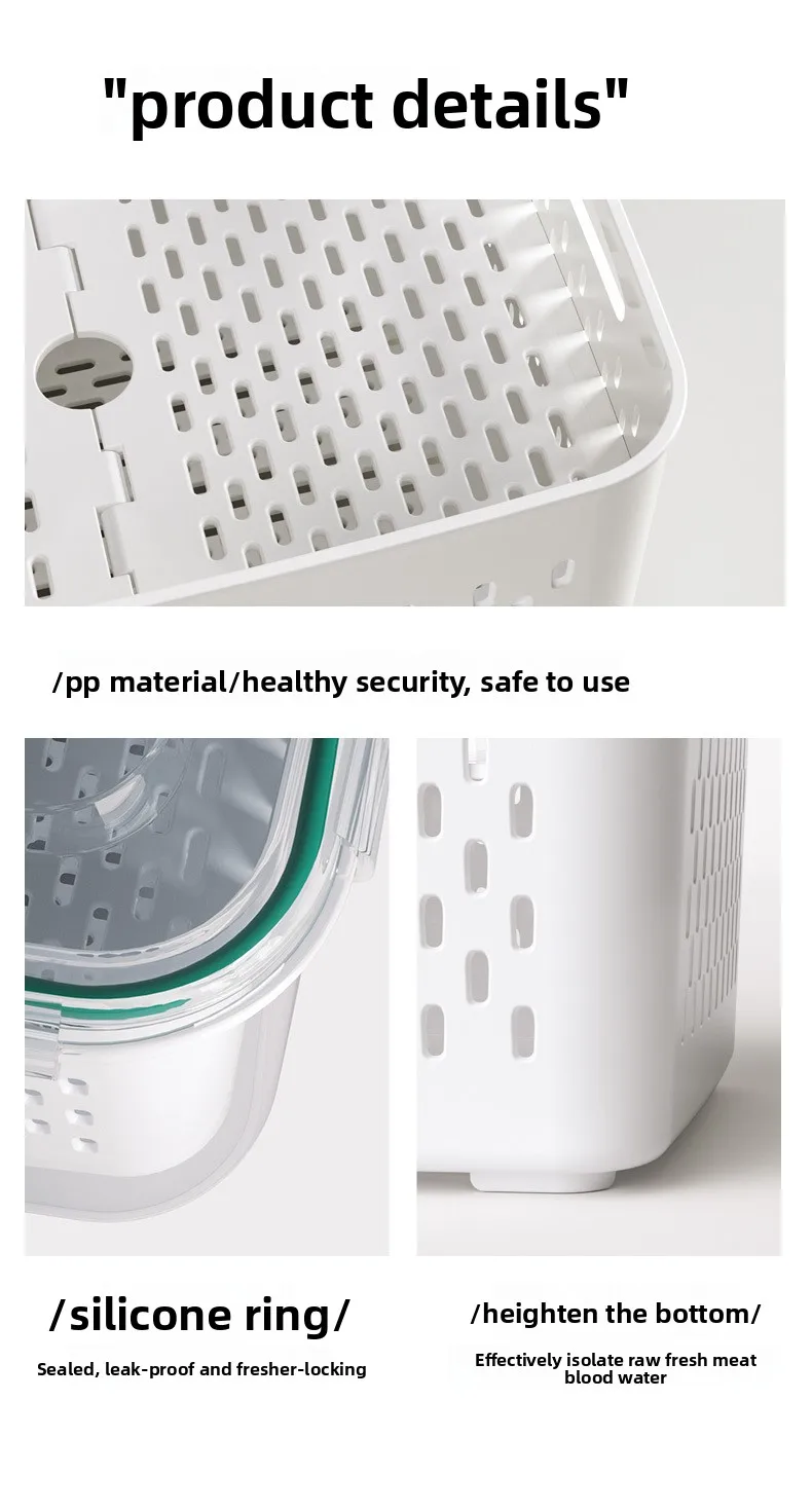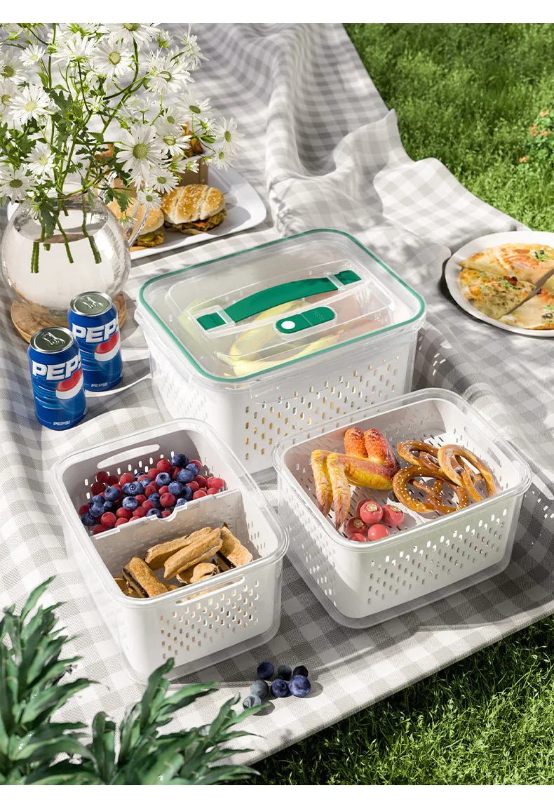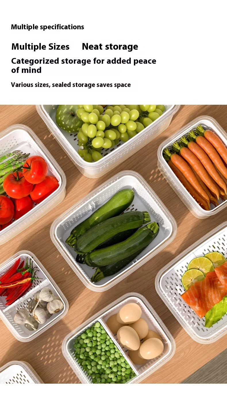 حافظ على نضارة طعامك لفترة أطول مع صندوق التخزين المحكم هذا، بتصميمه المزدوج الطبقات مع سلة تصريف قابلة للرفع. يحتوي الغطاء المحكم على زر صمام هواء لسهولة تحرير الضغط، مما يجعله مثاليًا لتخزين الفواكه والخضراوات واللحوم وبقايا الطعام. آمن للاستخدام في الميكروويف لإذابة الثلج، والتخزين في الفريزر، ومثالي لتنظيم الثلاجة يوميًا.