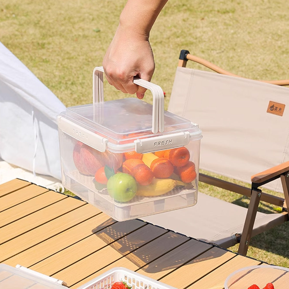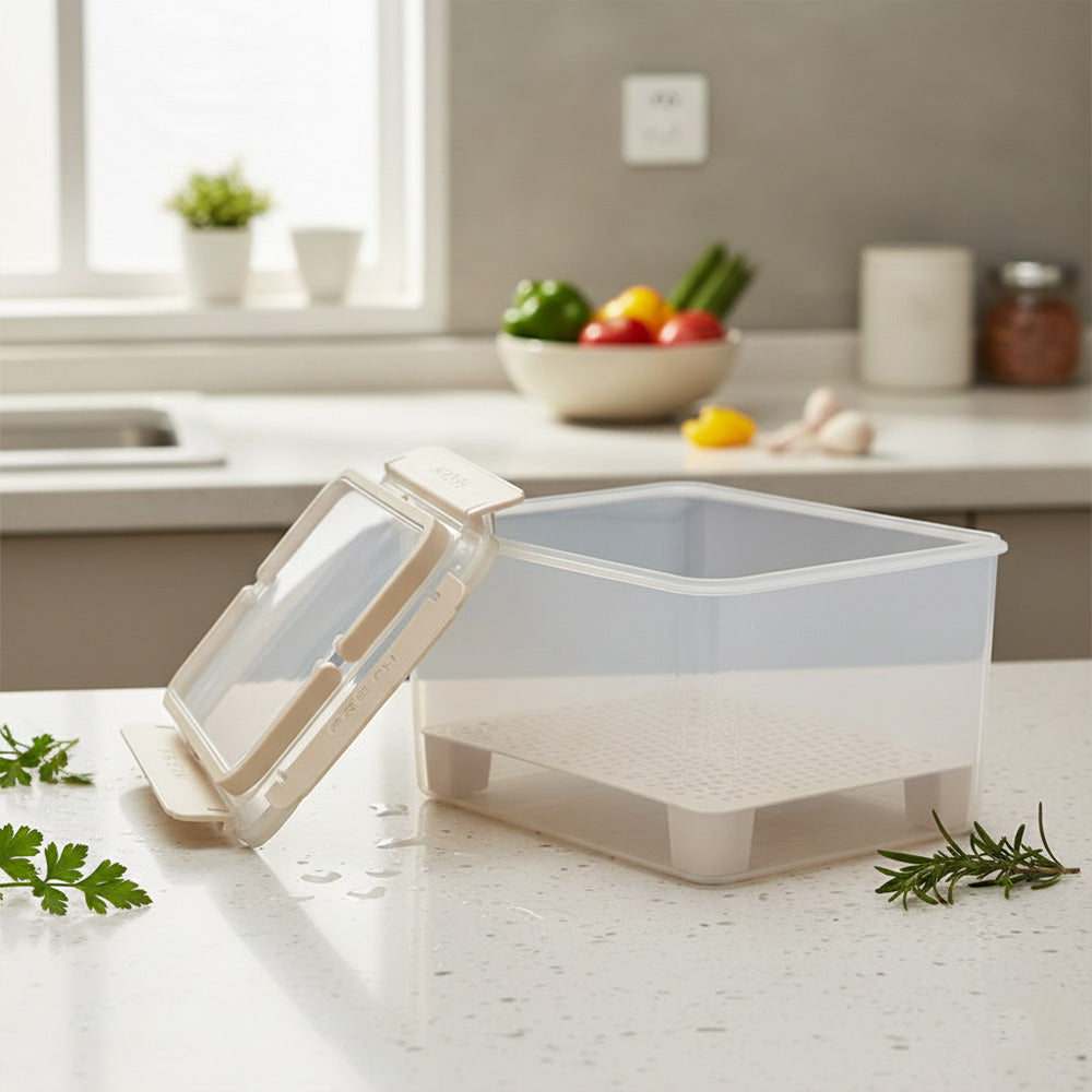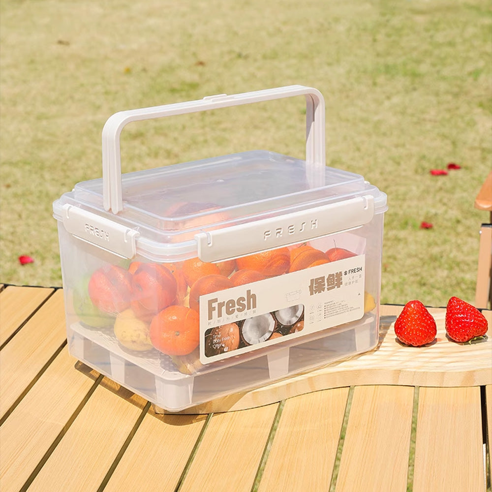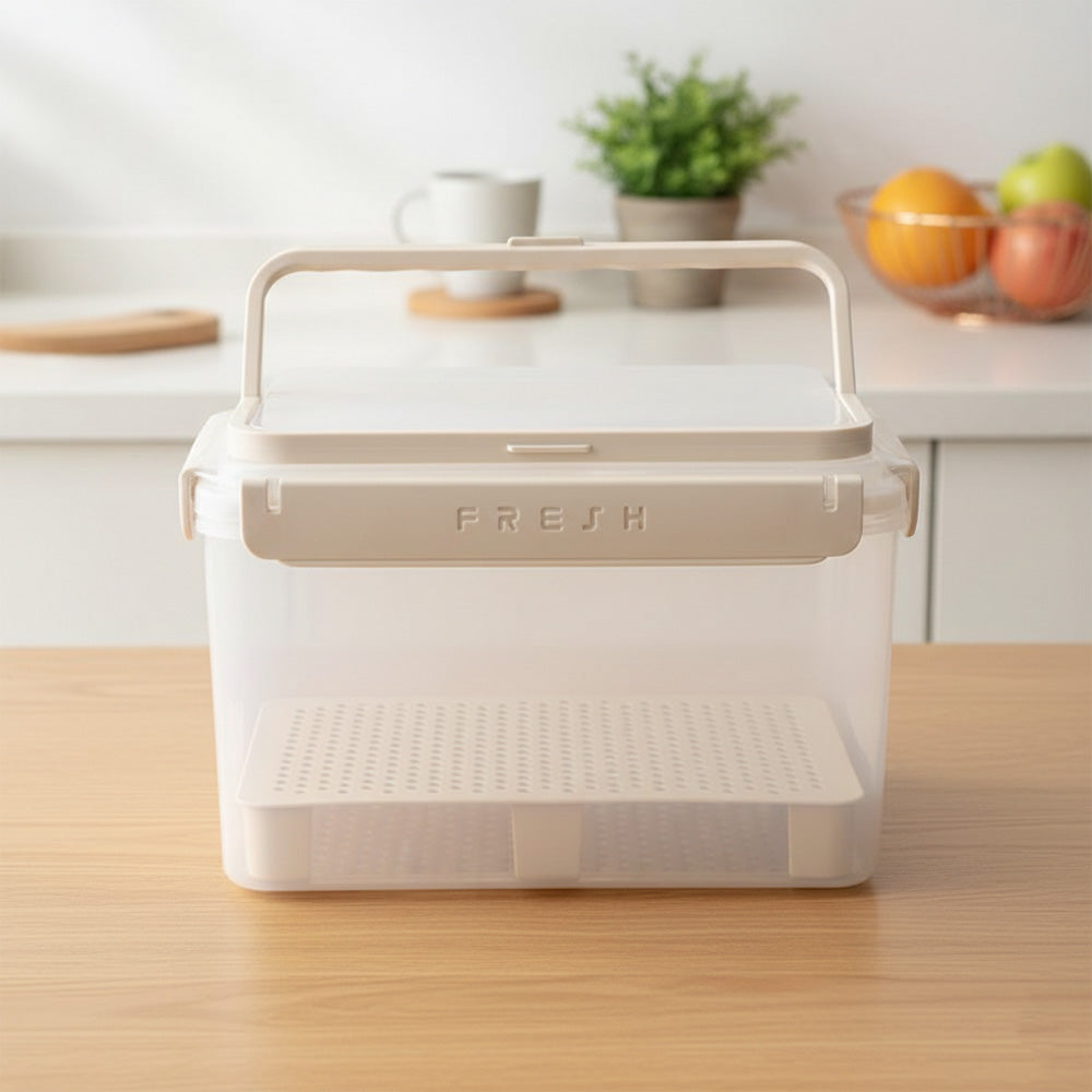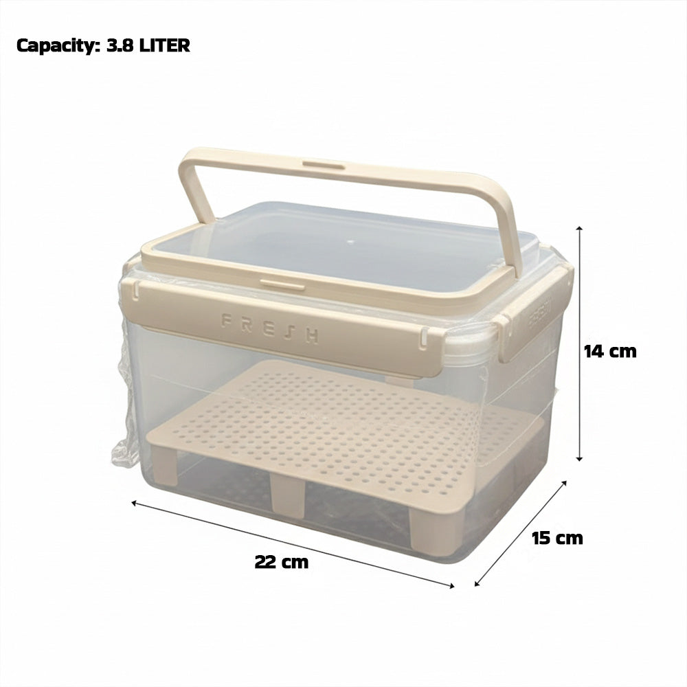 صندوق محكم الإغلاق لحفظ نضارة الفواكه والخضراوات، سعة 3.8 لتر، بمقبض متين وصينية تصريف مرتفعة، للحفاظ على نضارة الفواكه والخضراوات وجفافها. مثالي للتخزين في الثلاجة، وسهولة الحمل، وتنظيم الاستخدام في المطبخ.
