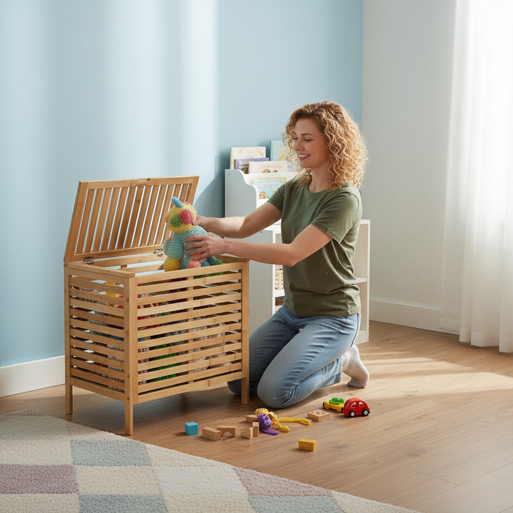 أضفِ دفئًا طبيعيًا وتنظيمًا أنيقًا إلى منزلك مع خزانة التخزين الرائعة هذه المصنوعة من الخيزران. مصممة بنمط عصري مُشَقَّط، وتوفر تهوية ممتازة، مما يجعلها مثالية لتخزين الغسيل، والمناشف، والألعاب، والأحذية، أو مستلزمات المنزل الأساسية. حجمها الصغير يناسب بسهولة الحمامات، وغرف النوم، والمداخل، ويضفي على مساحتك مظهرًا أنيقًا وبسيطًا.