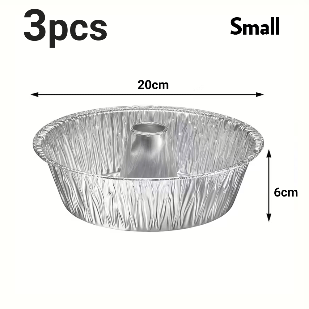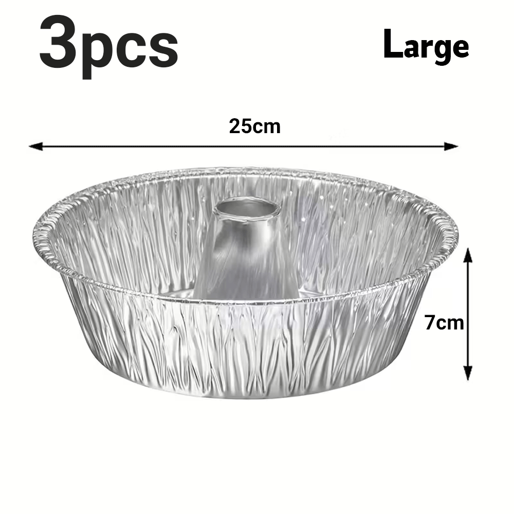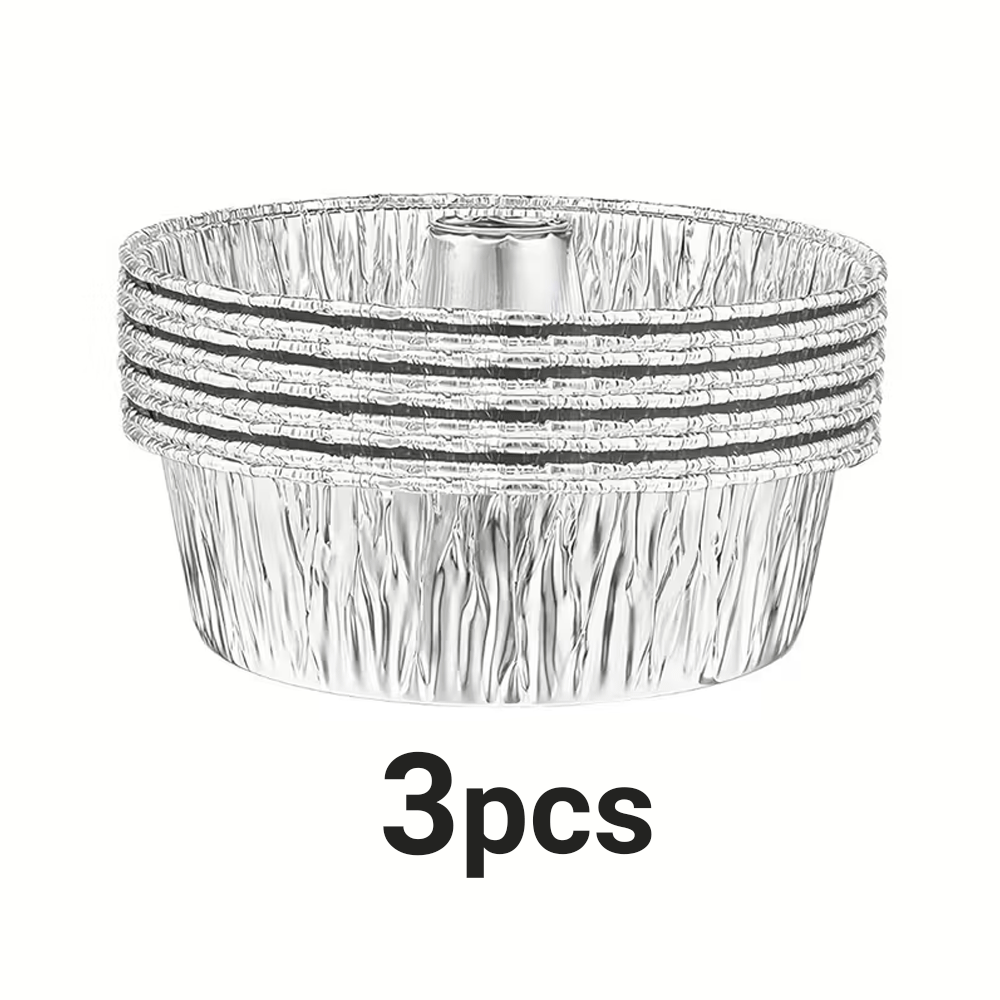 3 قطع من صواني خبز الكعك الدائرية المصنوعة من رقائق الألومنيوم للاستعمال مرة واحدة - علبة أنبوبية شديدة التحمل لكعكة الفاكهة وكعكة الشيفون