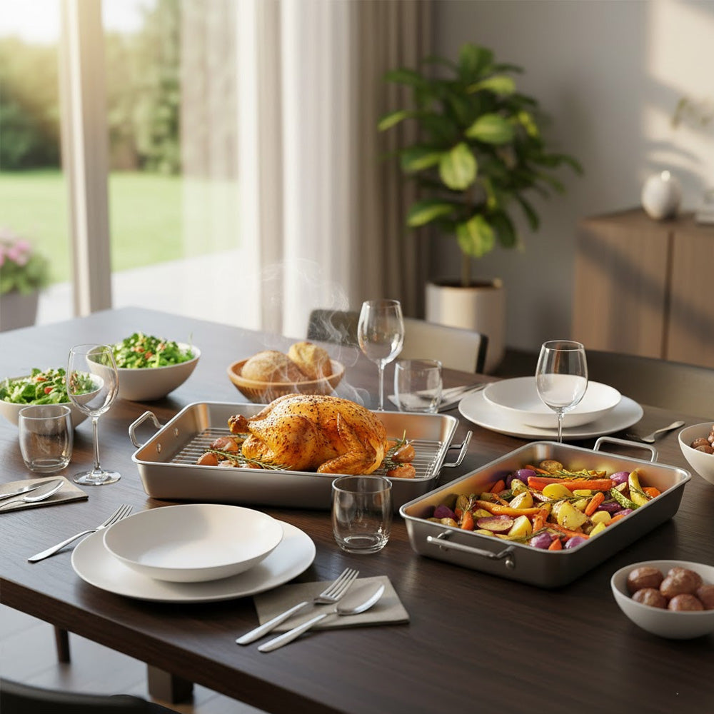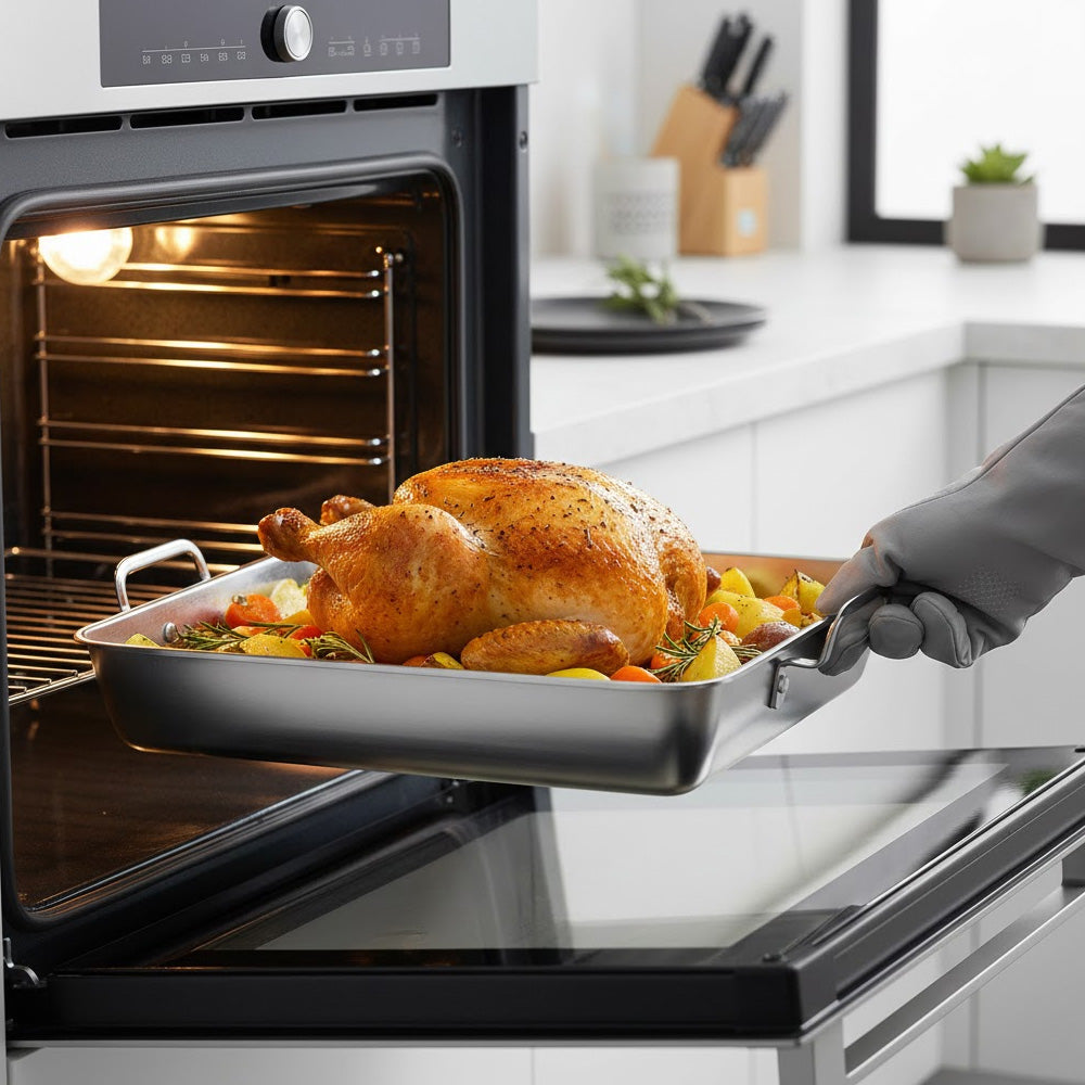 مثالية لتحميص الدجاج، واللحوم، والخضراوات، أو خبز الحلويات، هذه الصينية أداة أساسية لا غنى عنها في مطبخك، سواء كنت طاهيًا منزليًا أو محترفًا.