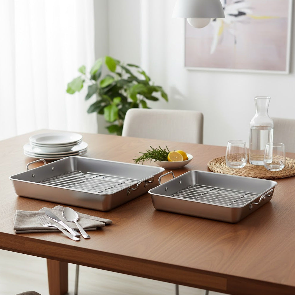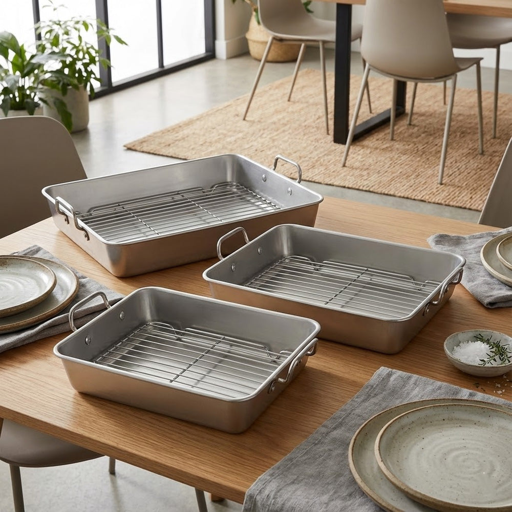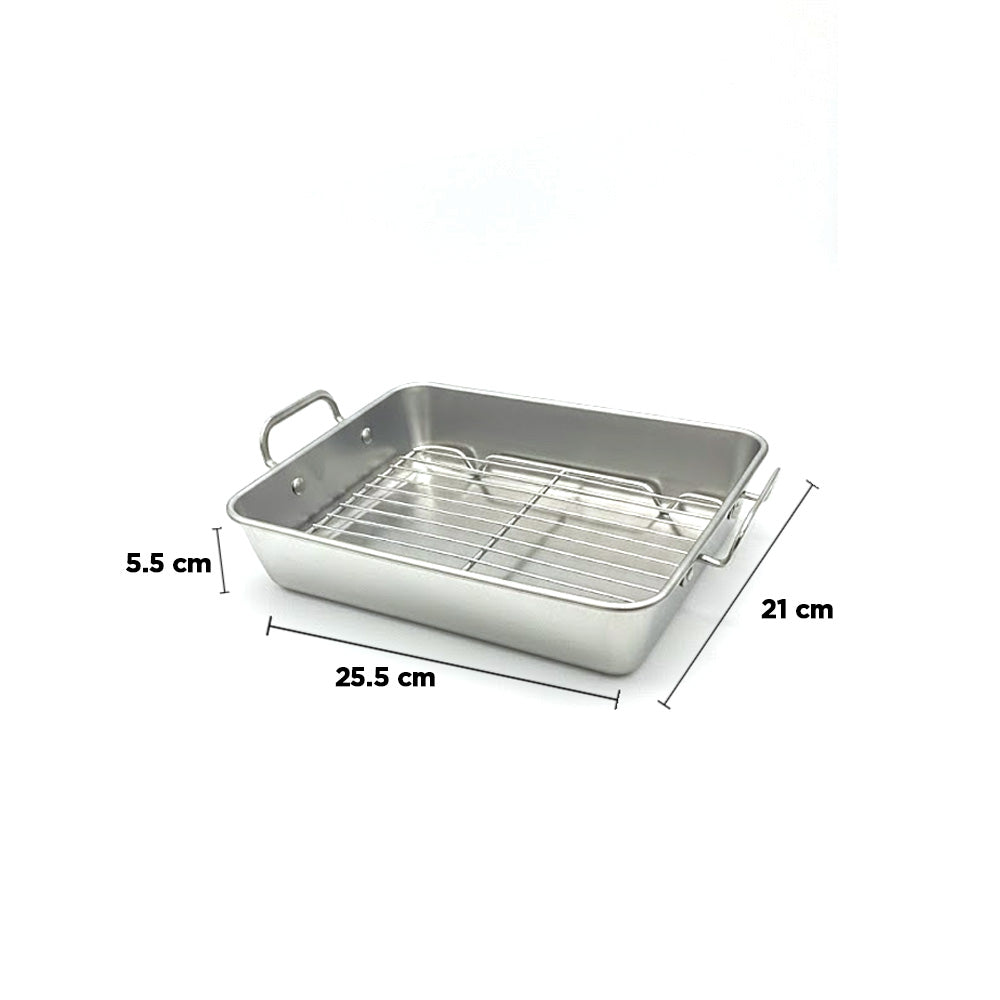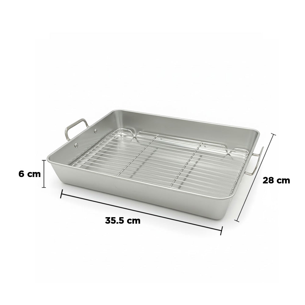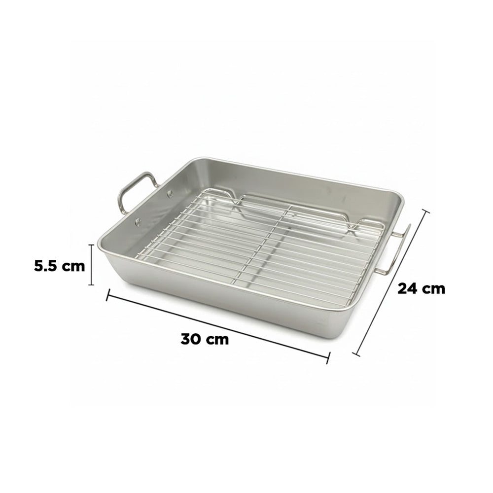 ارتقِ بتجربة الطهي والخبز مع صينية التحميص المستطيلة المصنوعة من الألومنيوم عالي الجودة، والمصممة لتدوم طويلاً، وتوزع الحرارة بالتساوي، وتوفر لك الراحة في الاستخدام اليومي. تأتي الصينية مزودة برف معدني قابل للإزالة، مما يجعلها مثالية لتحميص اللحوم، والخبز، والشواء، وتصفية الزيت أو الدهون الزائدة.