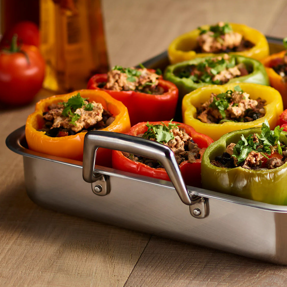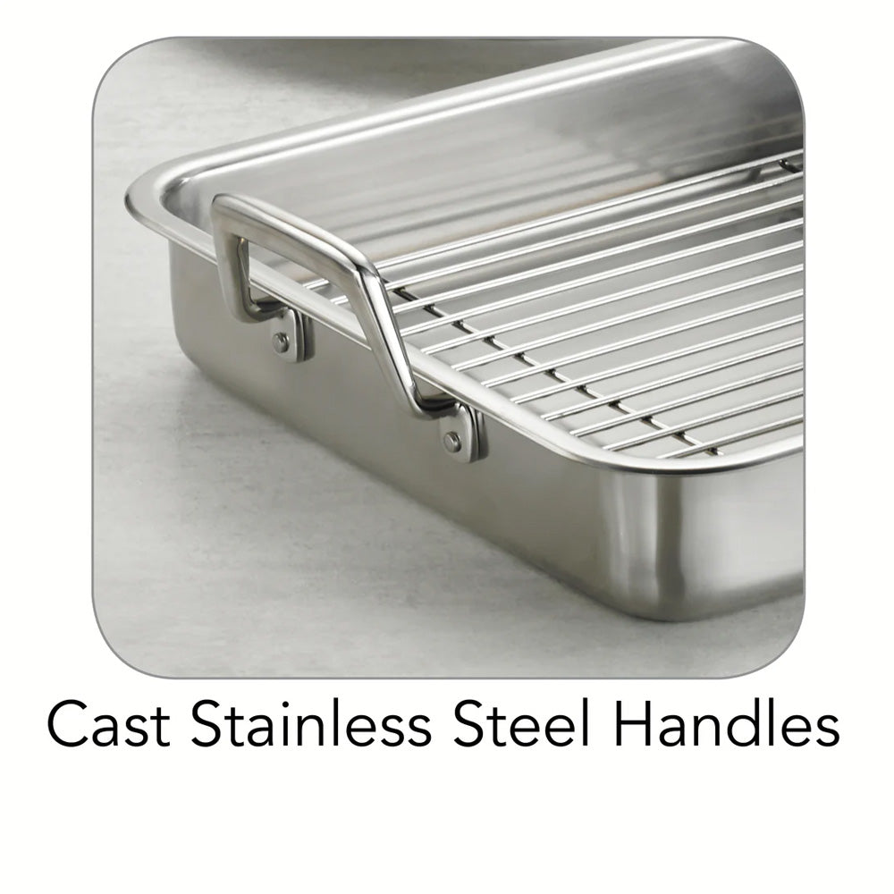مصنوعة من الألومنيوم خفيف الوزن والمتين، تسخن الصينية بالتساوي لتساعدك على تحقيق نتائج مثالية في كل مرة. يسمح الرف المرتفع بتدوير الهواء حول الطعام، بينما تضمن المقابض الجانبية المدمجة سهولة الاستخدام وأمانه.