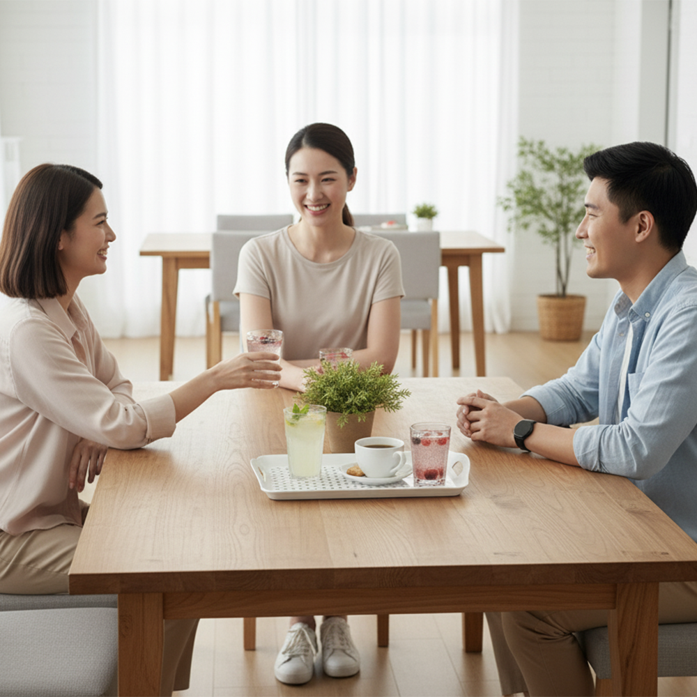 لتقديم الشاي والقهوة، ترتيب الأدوات المنزلية، أو كقاعدة لتصريف الأواني والأكواب.