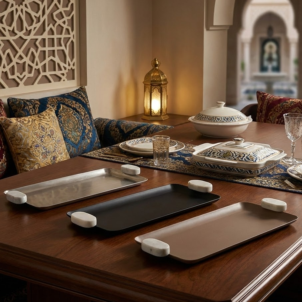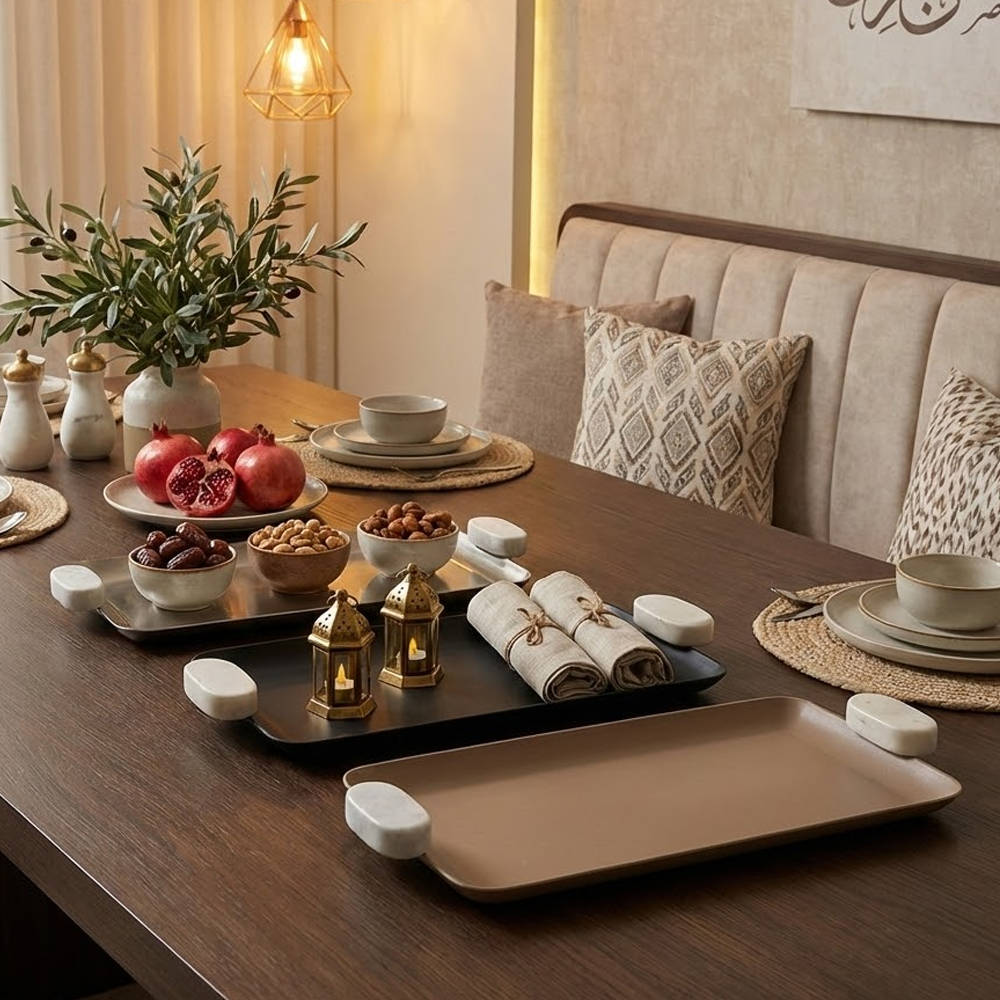 أضف لمائدة ضيافتك لمسة من الأناقة والرقي مع صينية التقديم العصرية المصممة بعناية لتجمع بين البساطة والفخامة.