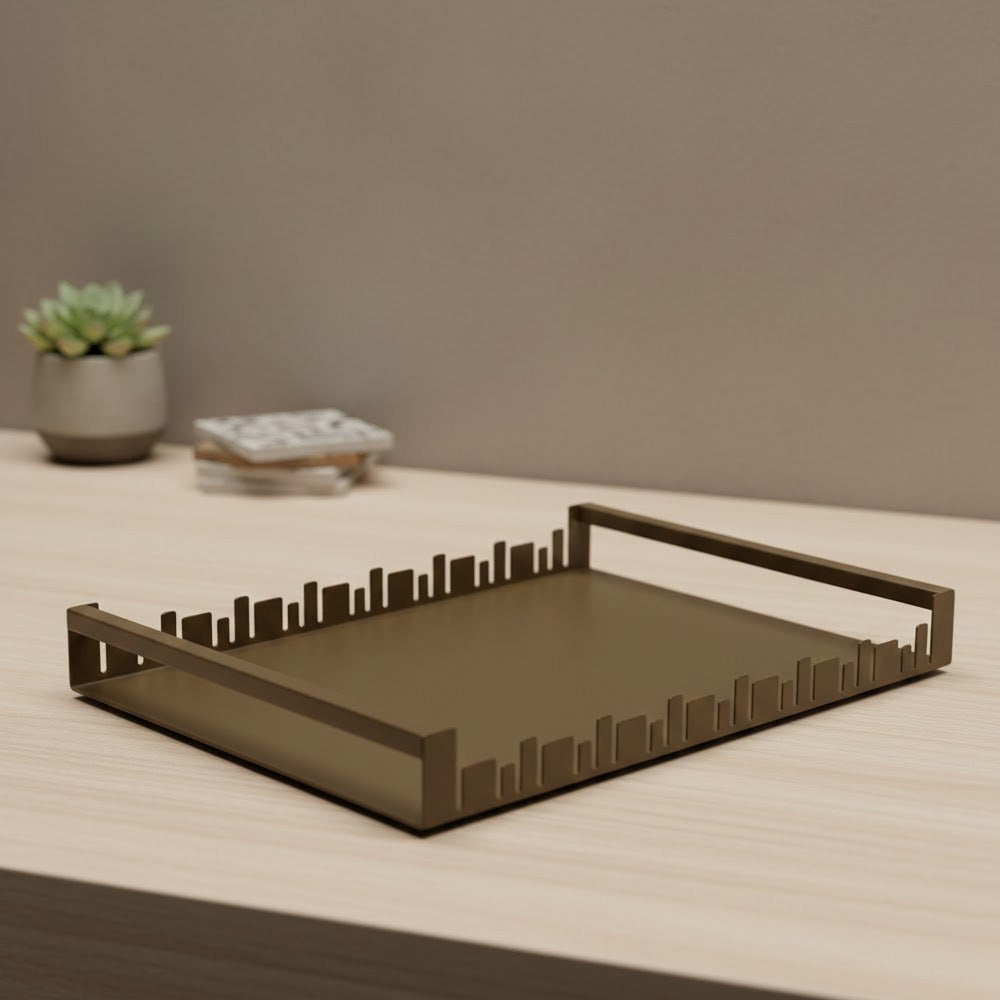 أضف لمسة من الفخامة المعمارية إلى منزلك مع مجموعة صواني "أفق المدينة". تتميز هذه المجموعة بتصميمها الفريد المستوحى من الخطوط الهندسية الحديثة، مما يجعلها قطعة فنية تزيّن طاولة التقديم وتلفت أنظار ضيوفك.
