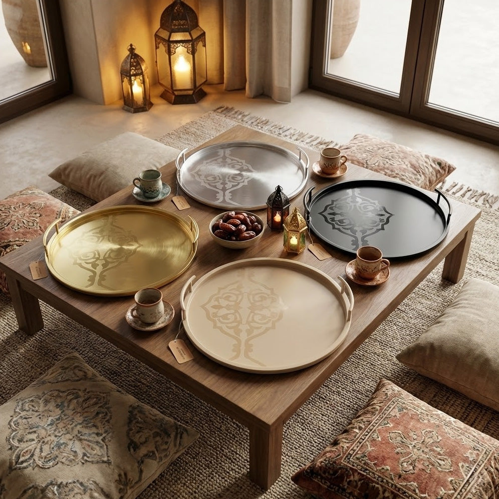 متوفرة بألوان الفضي والذهبي والأسود والبيج، تتيح لك هذه الصينية تنسيقها بسهولة مع ديكور منزلك مع إضافة لمسة من الأناقة.