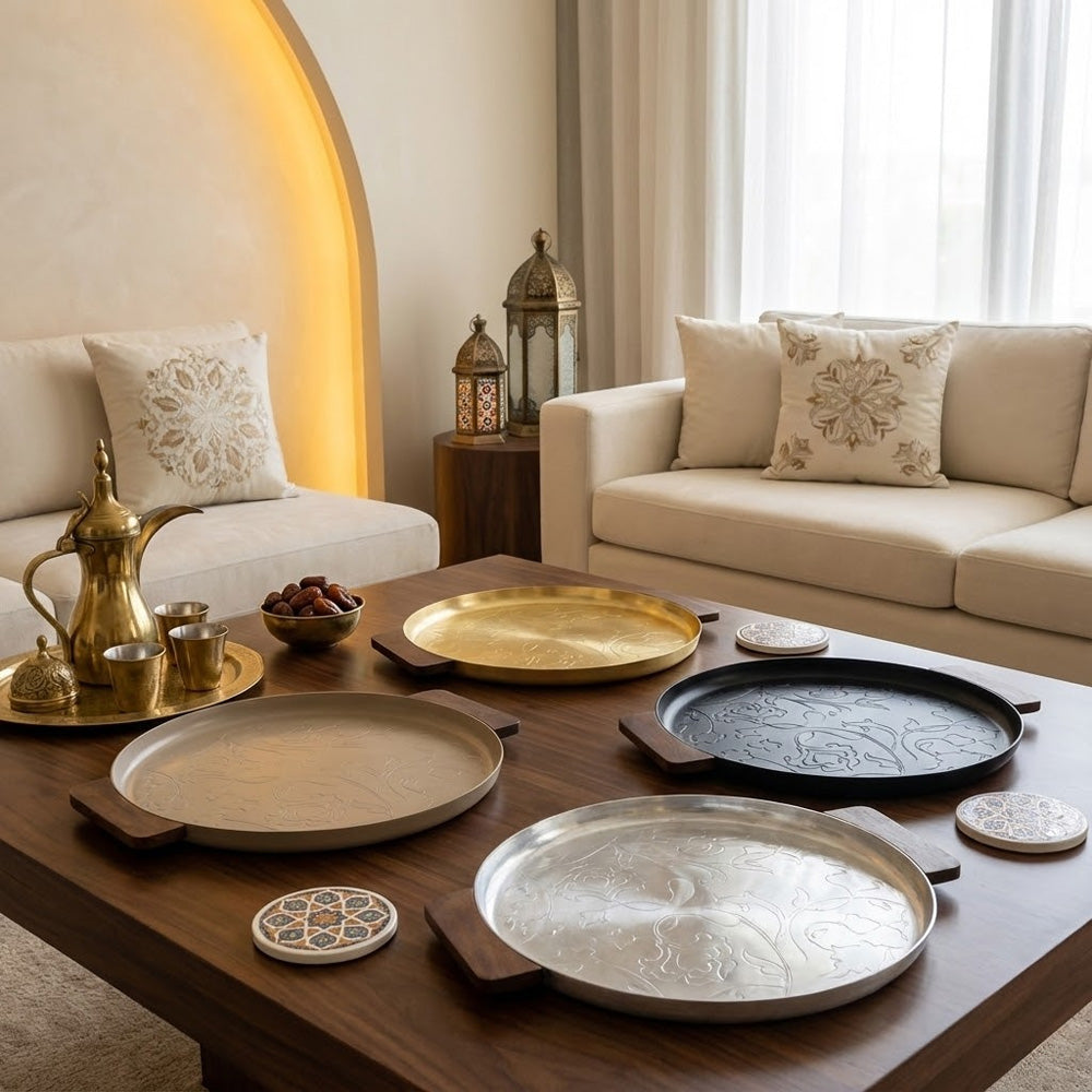 متوفرة بتشطيبات راقية تشمل الذهبي والفضي والأسود والبيج، تتناغم هذه الصينية بسلاسة مع الديكورات الداخلية العصرية والكلاسيكية والفاخرة.