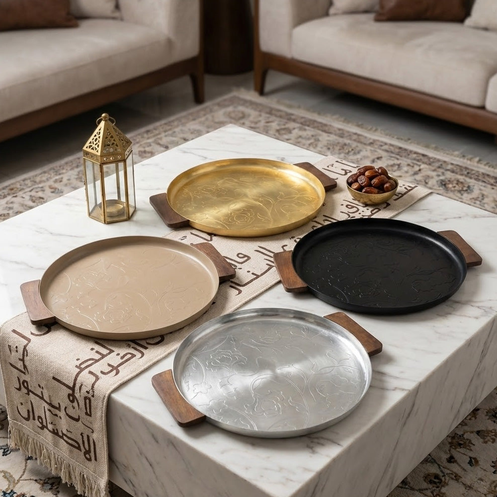 ✔ صينية معدنية فاخرة بسطح محفور