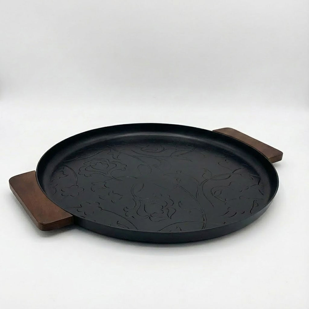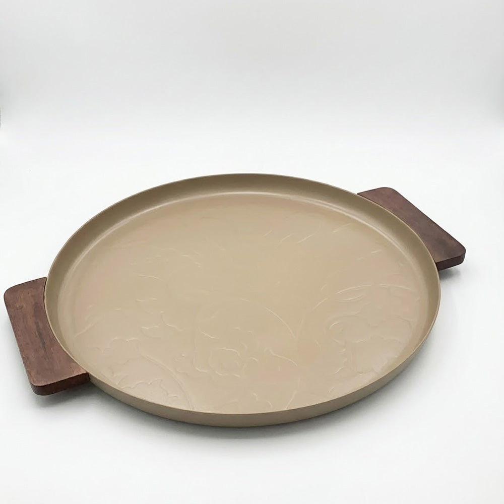 صينية تقديم معدنية مستديرة بمقابض خشبية – 50 سم
