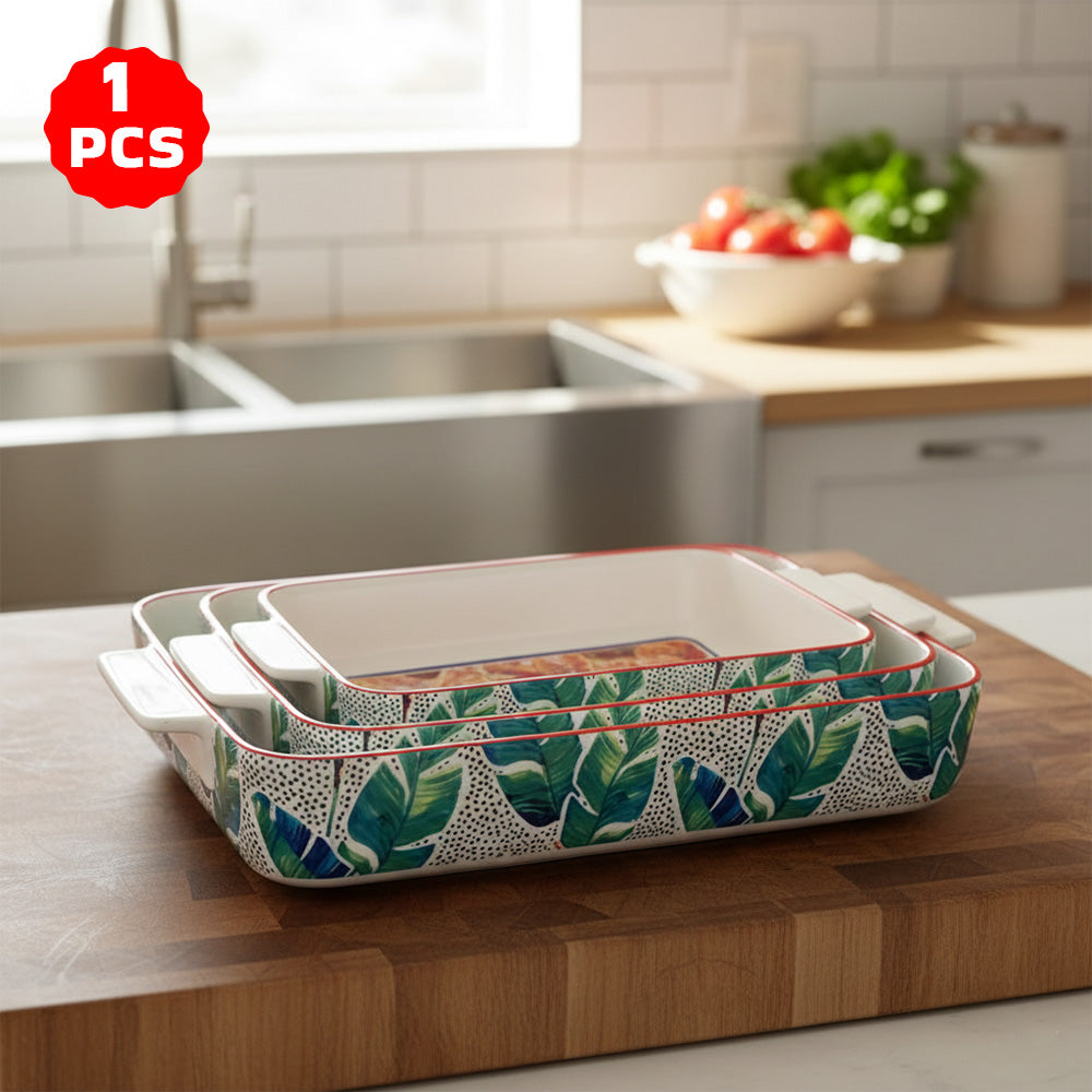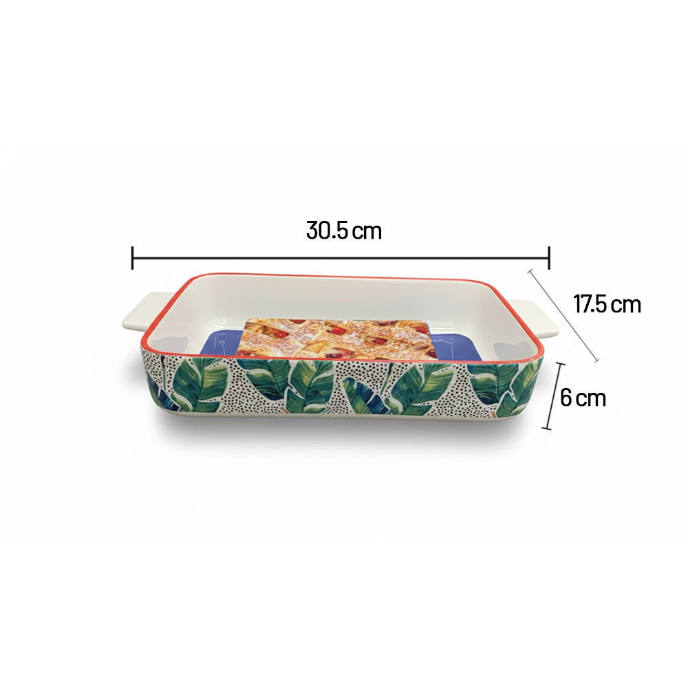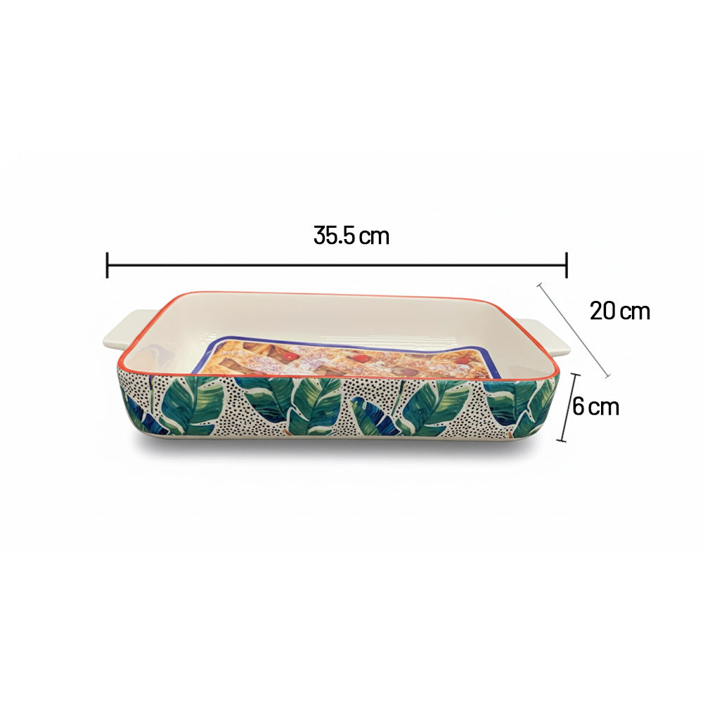 بتصميمه النابض بالحياة على شكل ورقة شجر ولمسة نهائية ناعمة ومصقولة، يُعد هذا الطبق أداة خبز عملية وطبق تقديم رائع. مثالي للطواجن واللازانيا والمعكرونة والخضروات المشوية والحلويات.