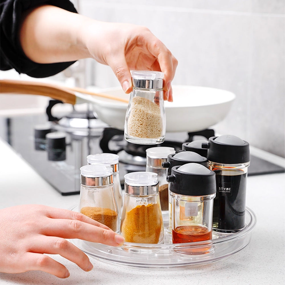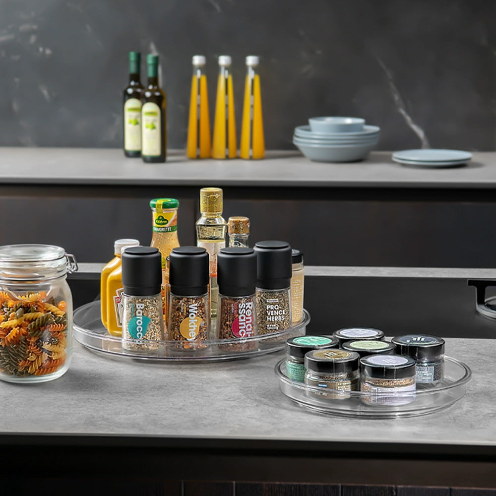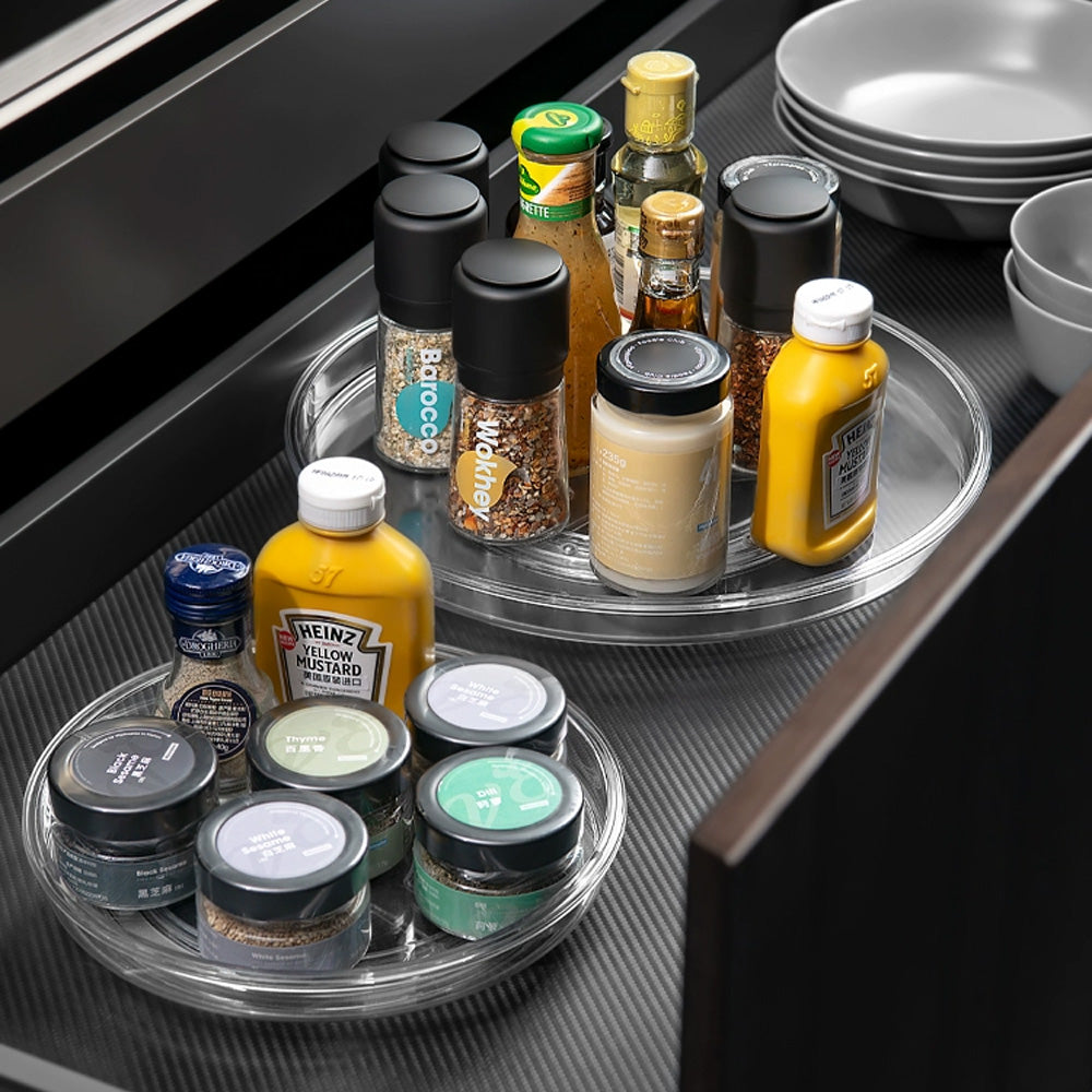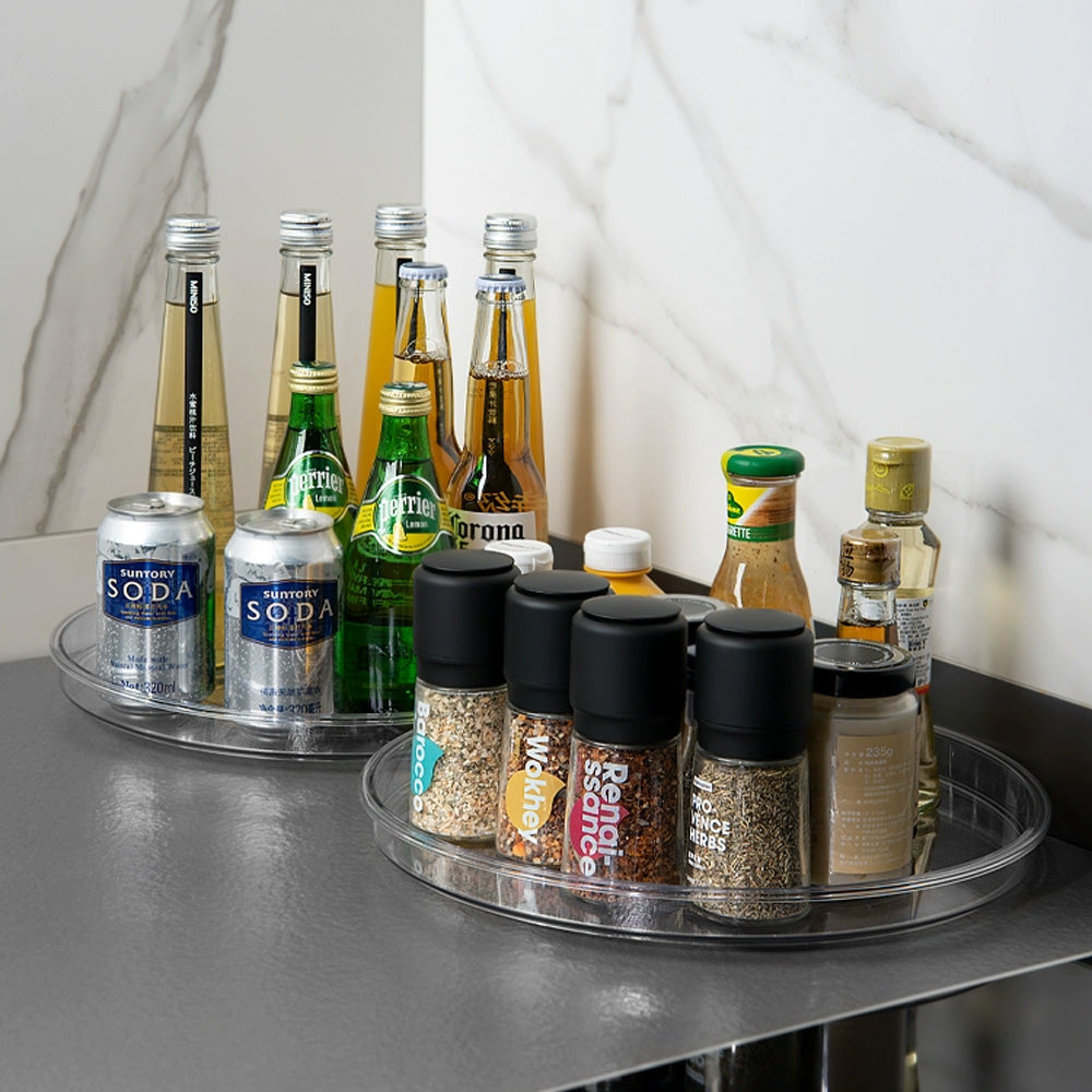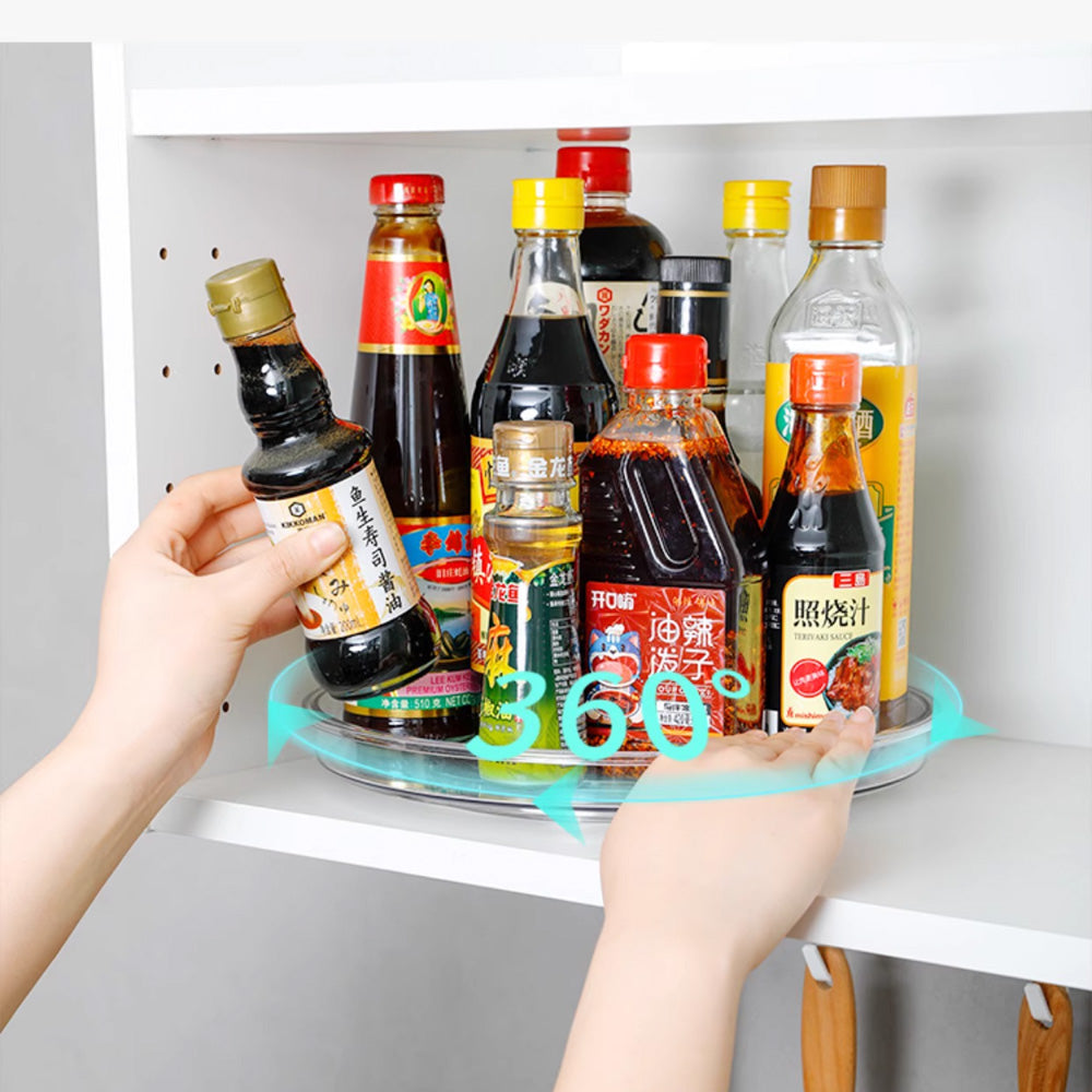 وفّر مساحة تخزين مثالية وحافظ على سهولة الوصول إلى أغراضك مع هذه الصينية الدوارة بزاوية 360 درجة. مثالية لمطبخك، أو مخزنك، أو حمامك، أو حتى منضدة الزينة، تتيح لك هذه الصينية الدوارة متعددة الاستخدامات دورانًا سلسًا بيد واحدة، مما يوفر وصولاً سريعًا إلى توابلك، أو توابلك، أو زجاجاتك، أو مستحضرات التجميل.