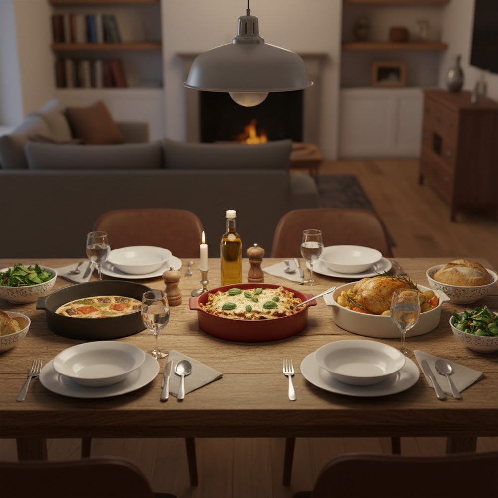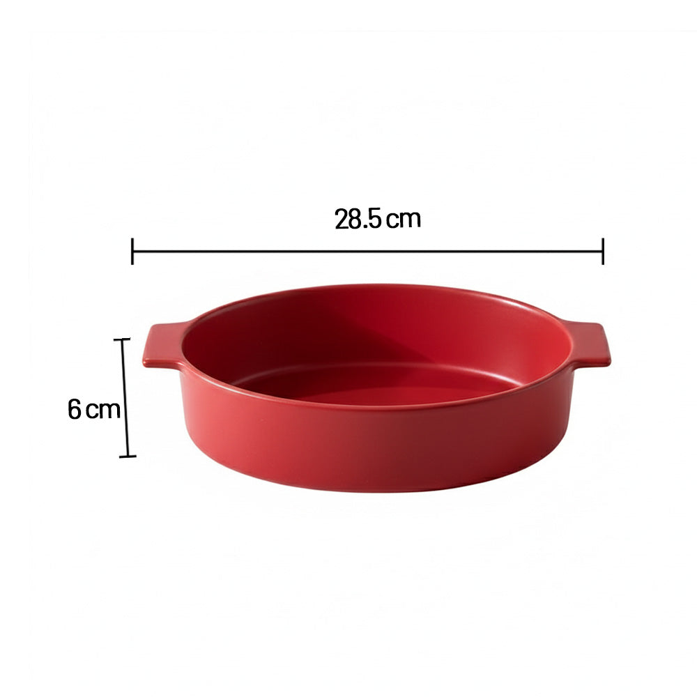 يتوفر هذا الطبق بثلاثة ألوان أنيقة: البيج، والأحمر، والأسود، ليضفي لمسة عصرية وأنيقة على مطبخك وطاولة طعامك. مقابضه العريضة تُسهّل رفعه حتى عندما يكون الطبق ساخنًا. تضمن مادة البورسلين توزيعًا متساويًا للحرارة لطهي مثالي في كل مرة.
