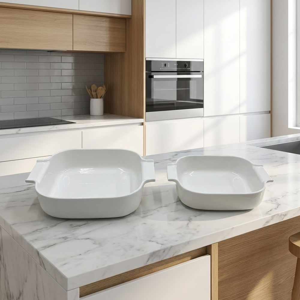 صينية فرن سيراميك مربعة بمقابض جانبية – أناقة عملية للطهي والتقديم