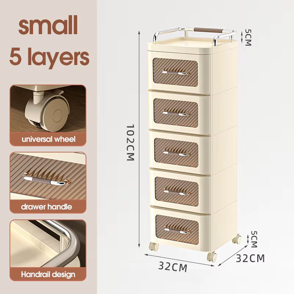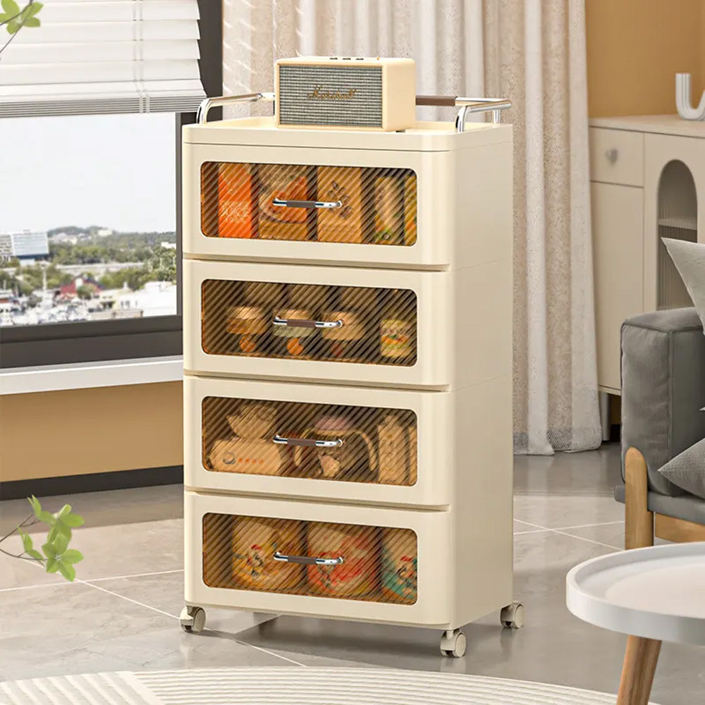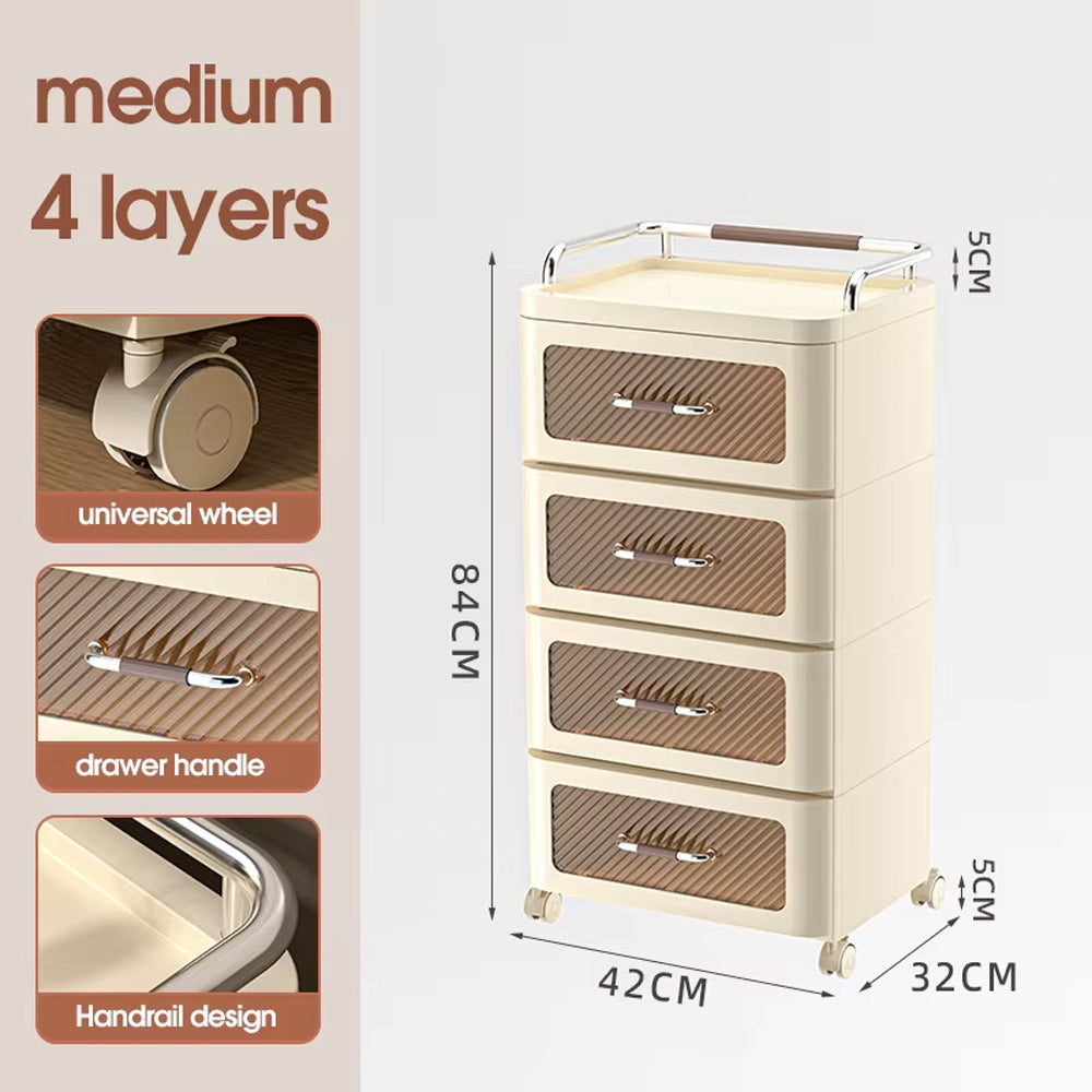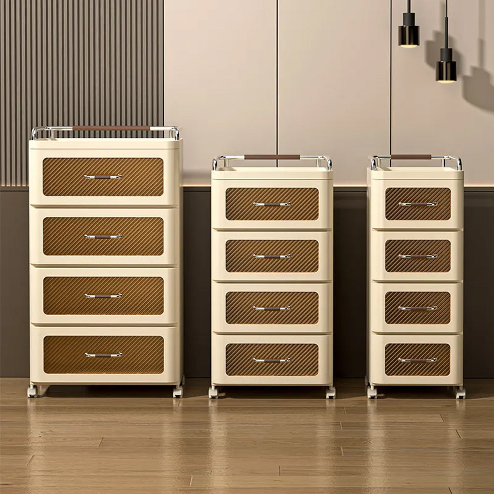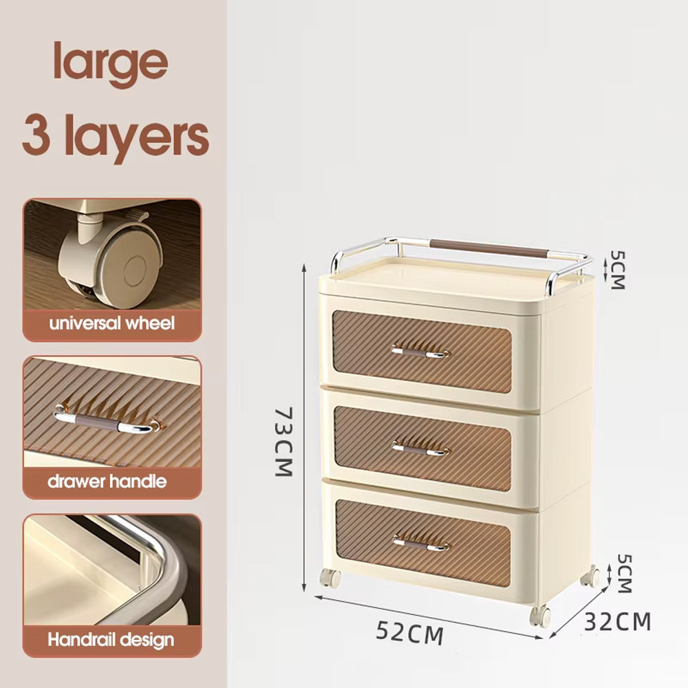 طاولة جانبية بلاستيكية حديثة باللون البني مع أبواب شفافة ودرج بلاستيكي مرن