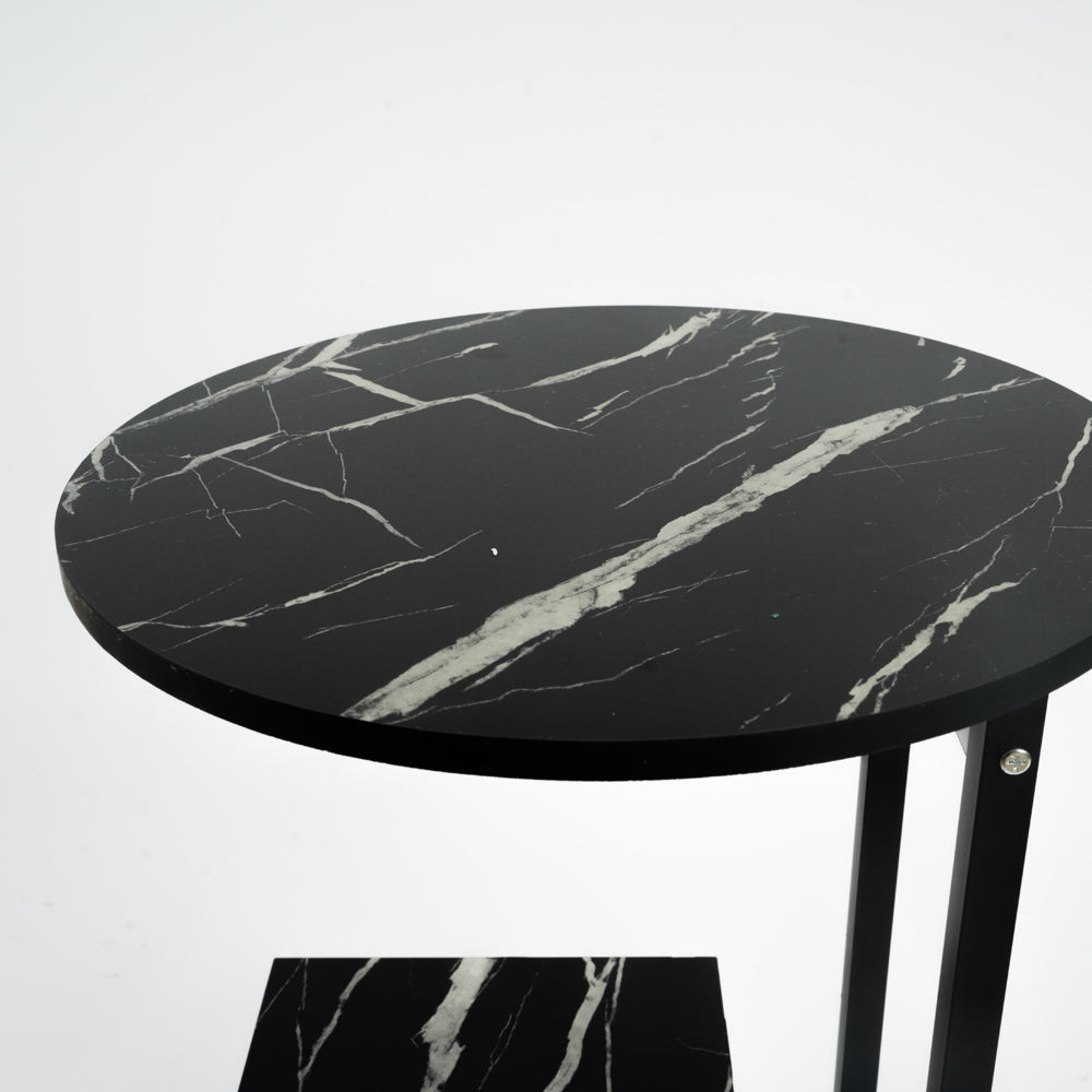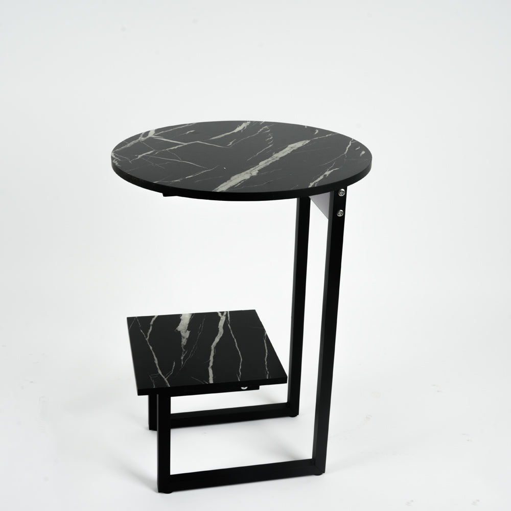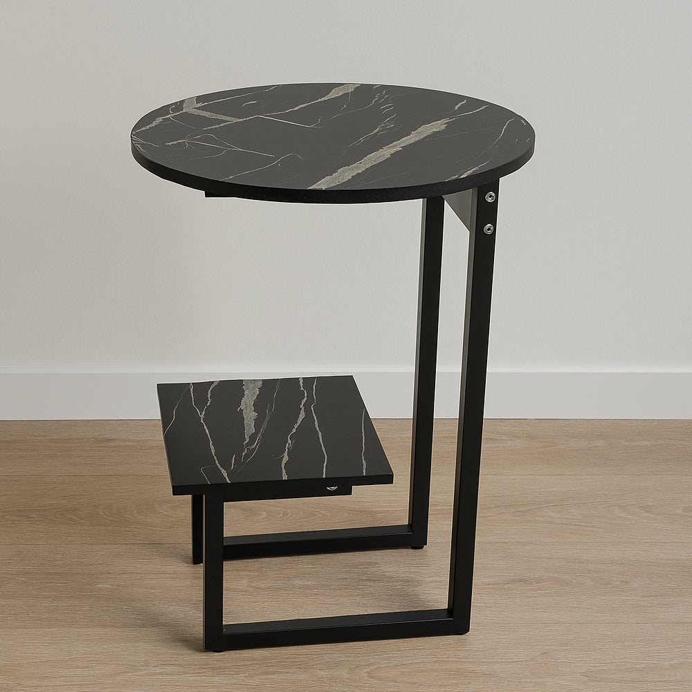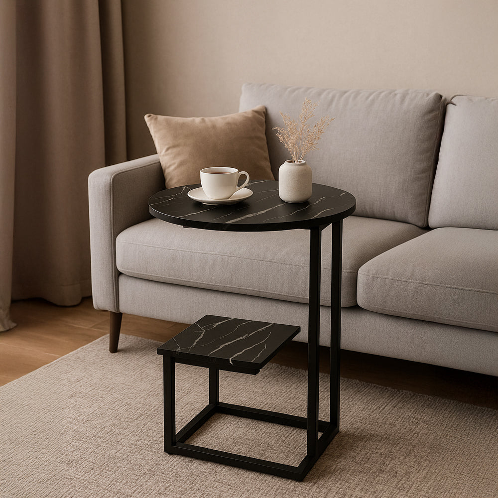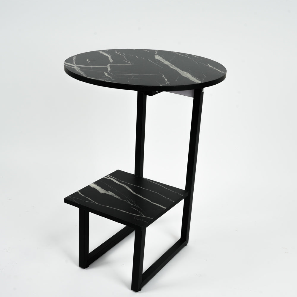 أضف لمسة من الأناقة العصرية إلى منزلك مع هذه الطاولة الجانبية  الفاخرة. بتصميم دائري أنيق مع قاعدة حديدية متينة ولمسة بالوان متعددة الأسود، تجمع الطاولة بين الجمال والوظيفة. تأتي بطبقة سفلية مربعة يمكن استخدامها للتخزين أو العرض، مما يجعلها مثالية لوضعها بجانب الأريكة أو السرير.