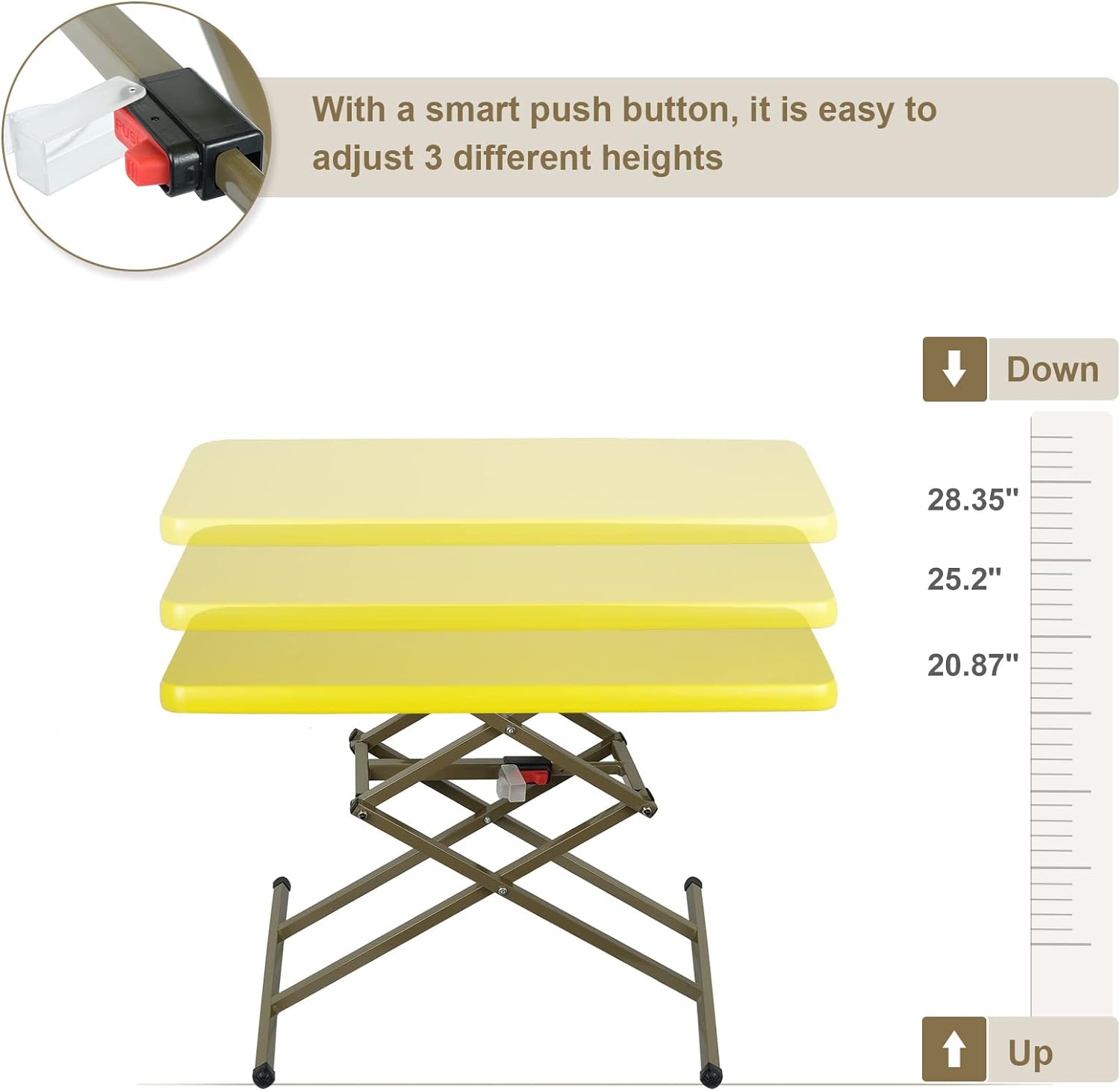 - 3 ارتفاعات مختلفة يمكن أن تلبي احتياجاتك في مناسبات مختلفة. مصممة للاستخدام الداخلي والخارجي، وللصناعة اليدوية أو طاولة الأطفال، أو طاولة صينية التلفزيون، أو طاولة الفناء، أو طاولة الكمبيوتر المحمول أو أي مكان يحتاج إلى طاولة إضافية.