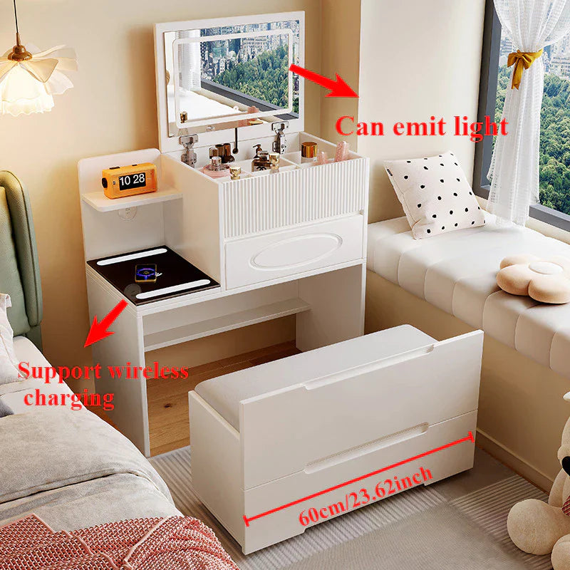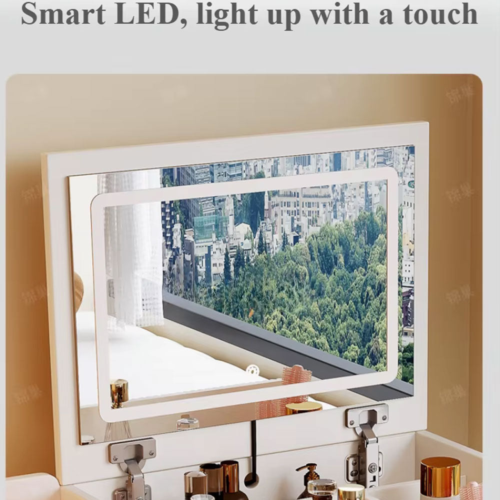 طاولة ماكياج مع مقعد ومرآة مضيئة
