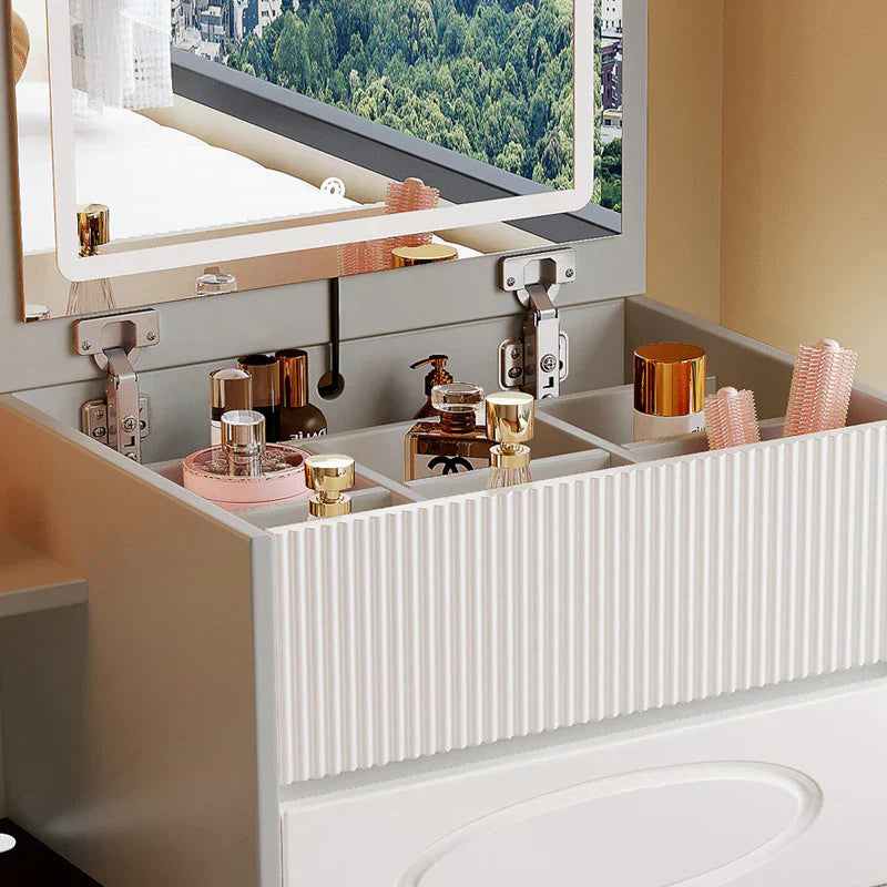 - مرآة ذكية LED: مرآة الزينة مع الاستمتاع بإضاءة الجيل الجديد لروتين المكياج الخاص بك مع مستويات السطوع مرآة لامعة قابلة للتعديل لمرآة LED مدمجة. زينة ذكية بتعتيم مرآة LED ثلاثية المستويات، تضيء بلمسة رئيسية، للحاجة الأساسية للاهتمام بمختلف أنواعها. مكتب الزينة مع الأمير والأضواء يحصل على مظهر لا تشوبه شائبة في كل مرة مع متطلبات الإضاءة.