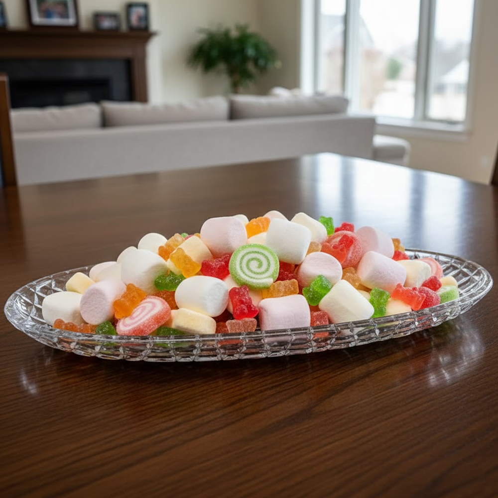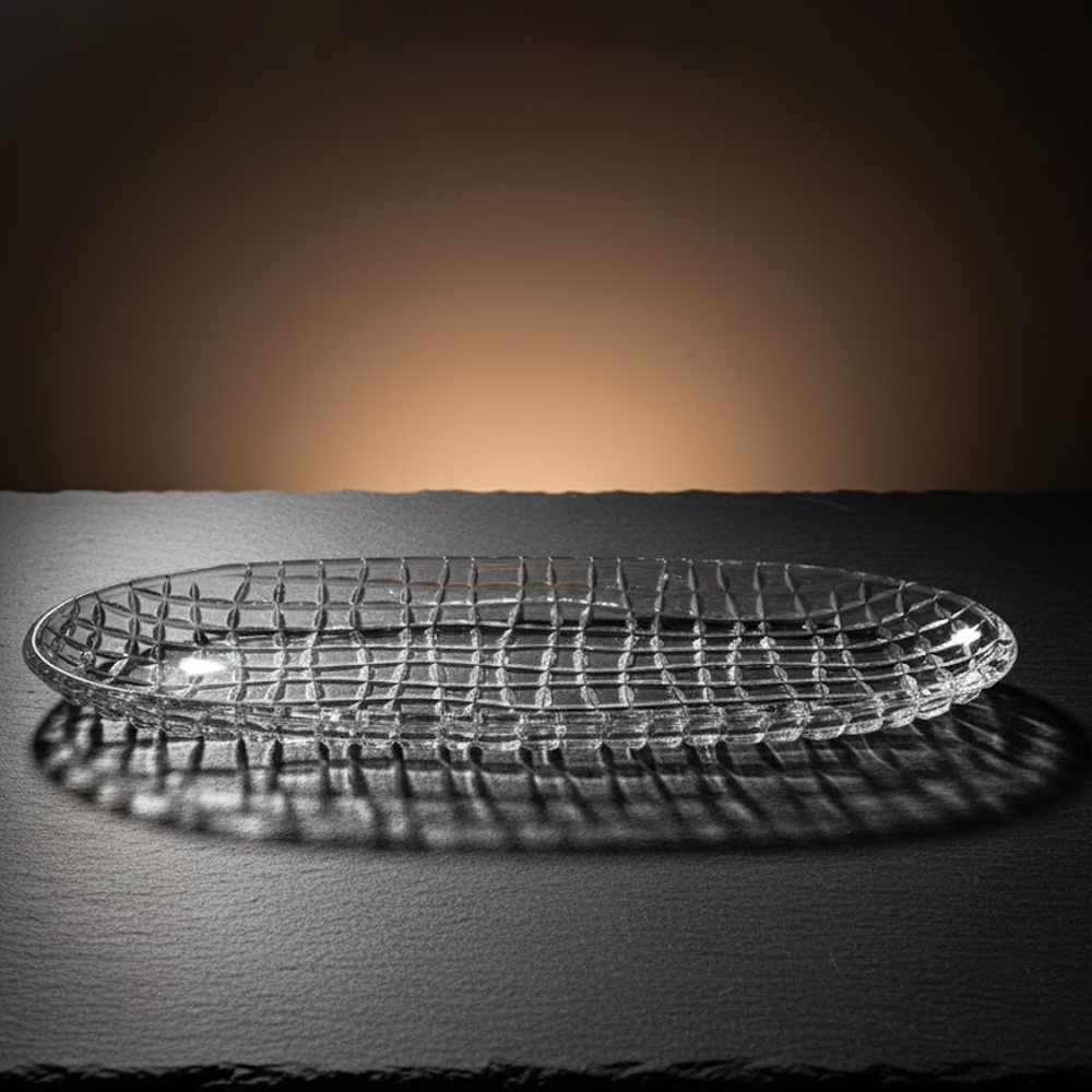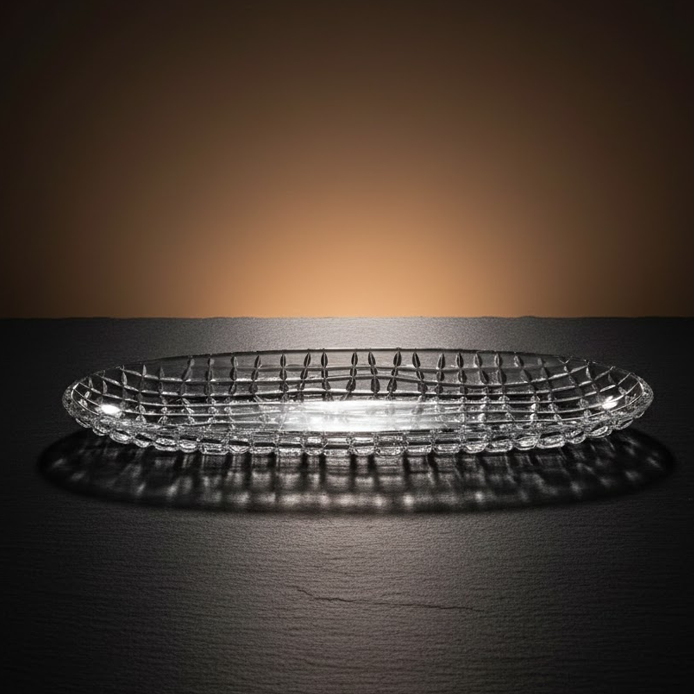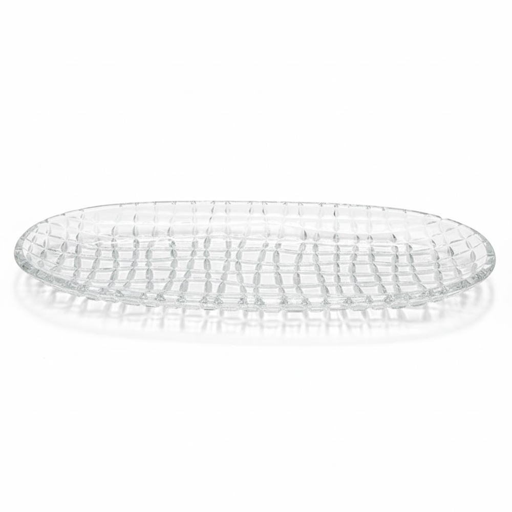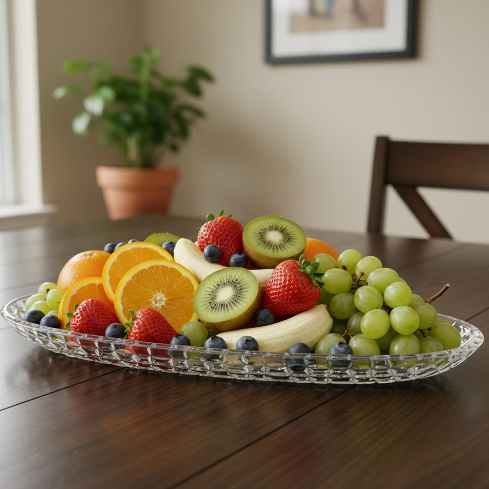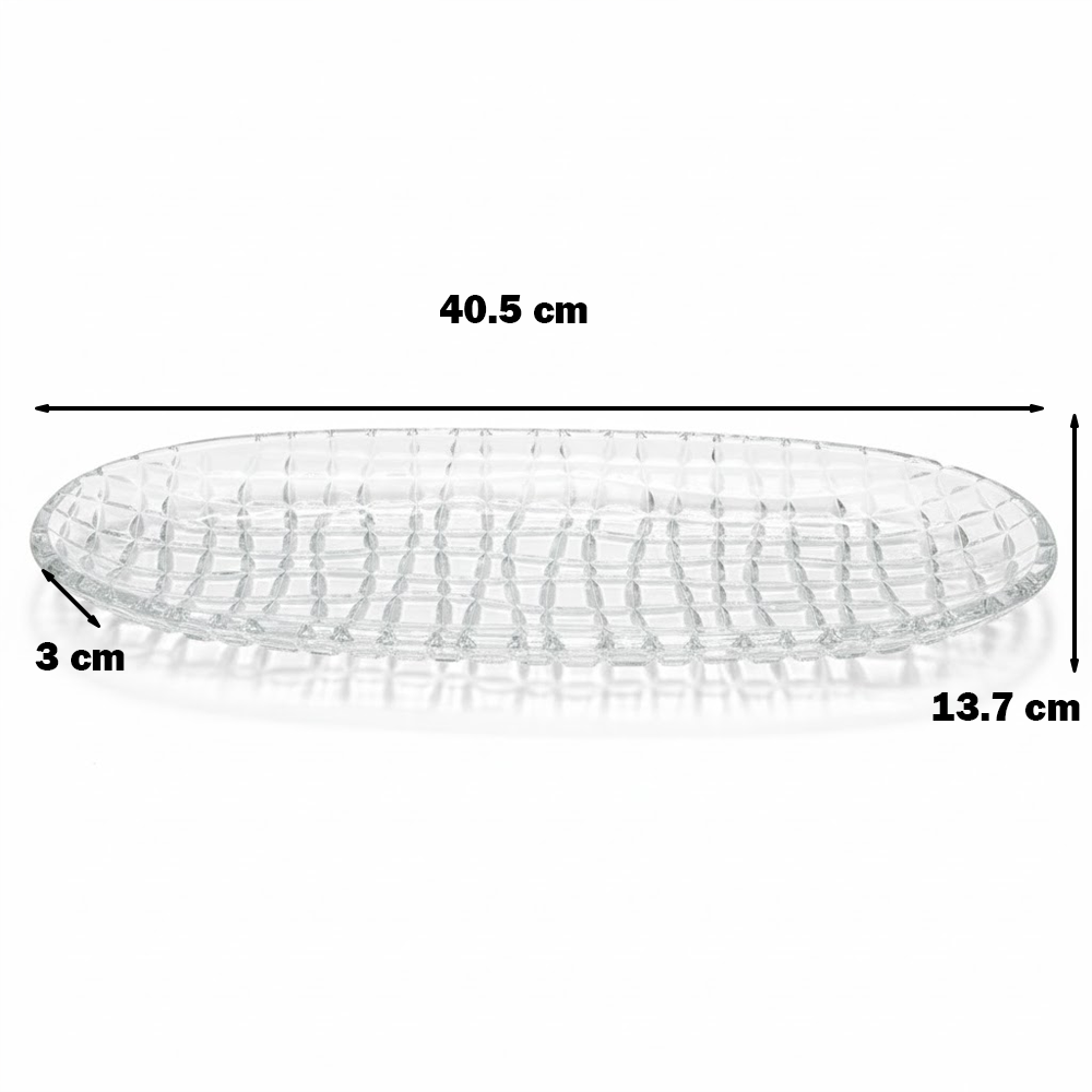 طبق تقديم زجاجي بيضاوي فاخر – تصميم راقٍ لتقديم الفواكه والحلويات (40.5 سم)