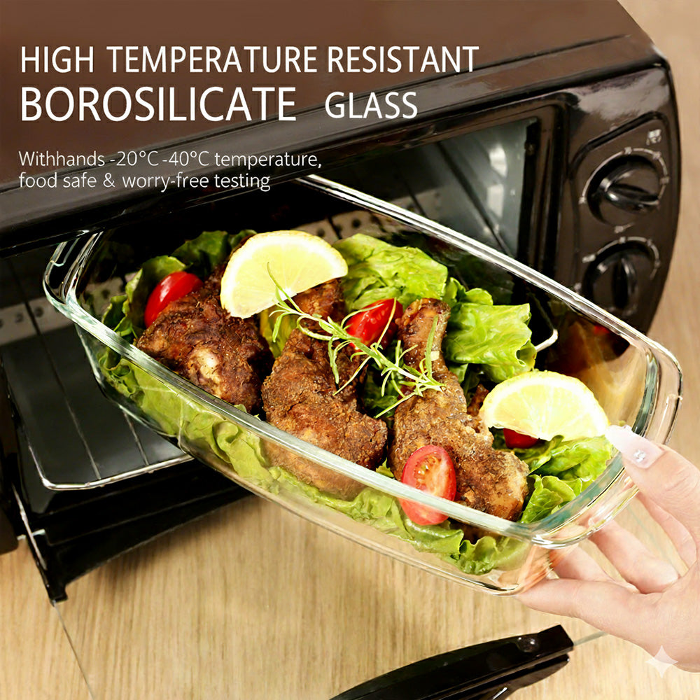 يضمن شكله المستطيلي ومقابضه العريضة سهولة الإمساك به واستخدامه الآمن، بينما يتيح لك هيكله الشفاف مراقبة طعامك أثناء طهيه. بفضل مقاومته الممتازة لتغيرات درجة الحرارة، فهو مناسب للأفران والميكروويف والثلاجات وغسالات الأطباق، مما يوفر لك الراحة والأناقة في آن واحد.