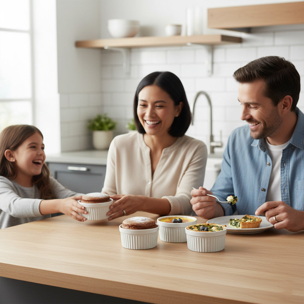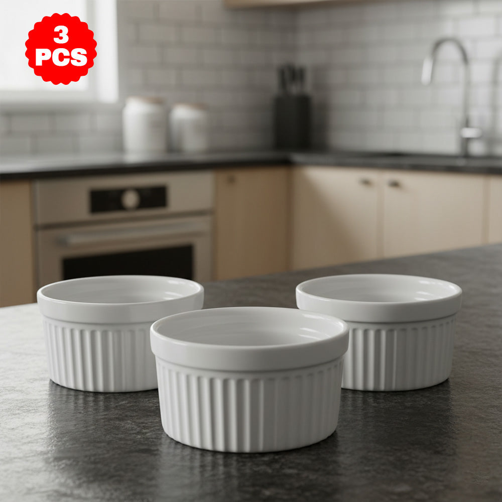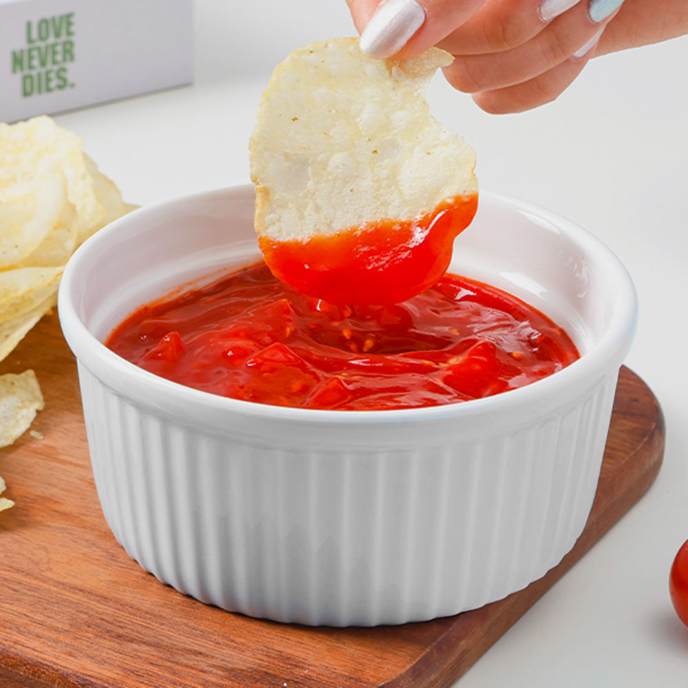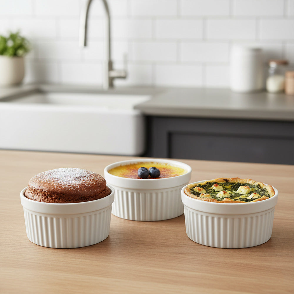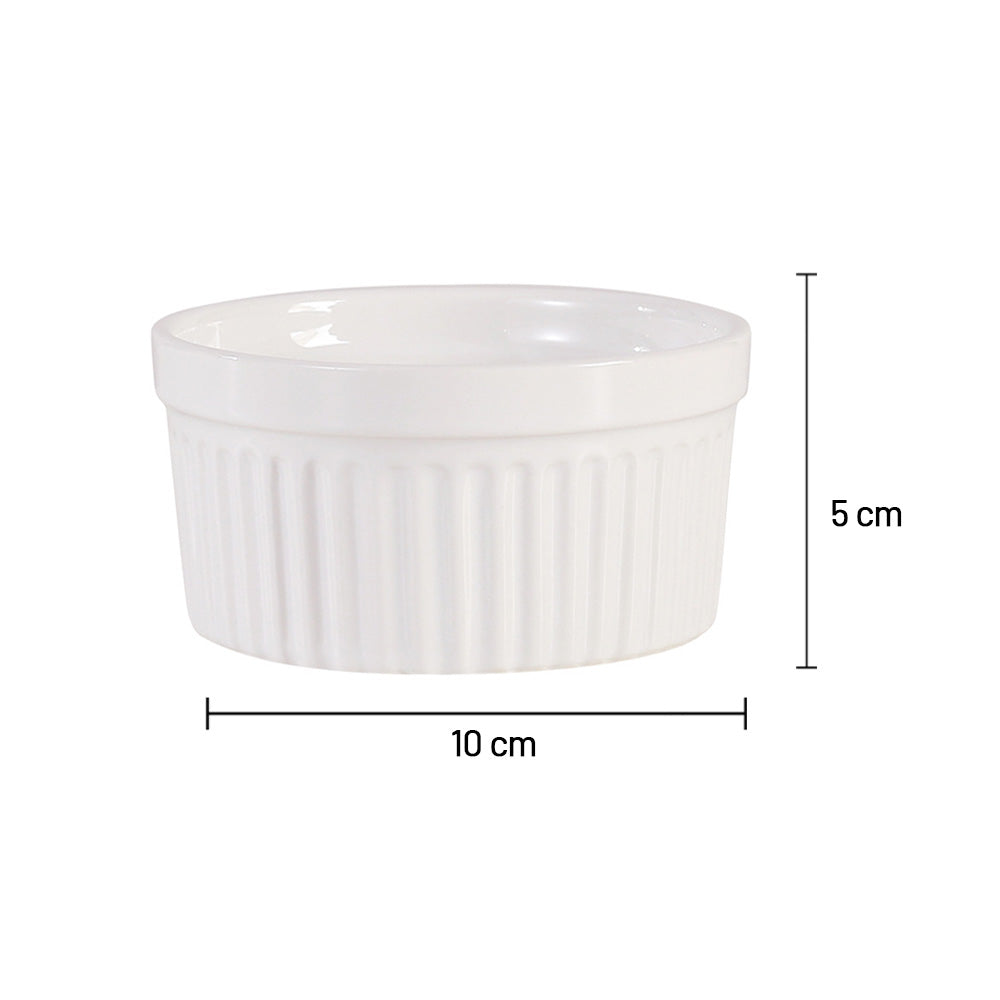 أضف لمسة من الأناقة إلى مطبخك مع وعاء رامكين الخزفي الأبيض الكلاسيكي هذا، مثالي للخبز والتقديم والضيافة. يبلغ قطره 10 سم وارتفاعه 5 سم، وهو مثالي للحلويات الفردية، والسوفليه، والكريم بروليه، والصلصات، والأطباق الجانبية.