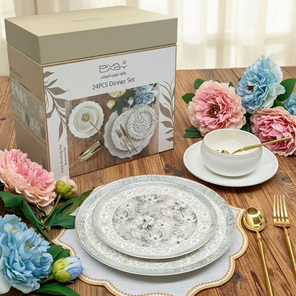 ✨ طقم أطباق المائدة الفاخر 24 قطعة – ديفا ليدي | جودة راقية وتصميم ملكي