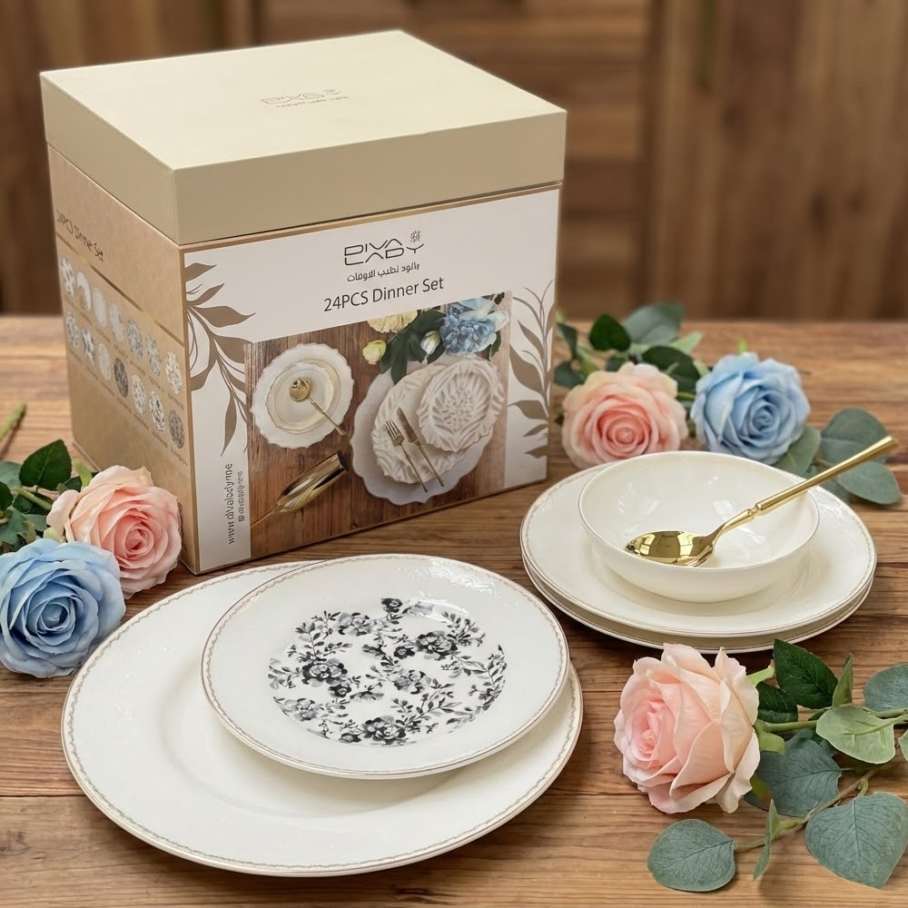✨ طقم أطباق المائدة الفاخر 24 قطعة – ديفا ليدي | جودة راقية وتصميم ملكي