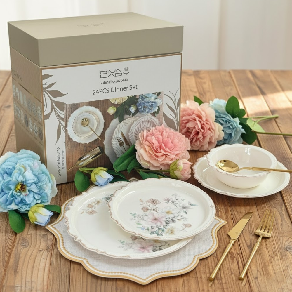 ✨ طقم أطباق المائدة الفاخر 24 قطعة – ديفا ليدي | جودة راقية وتصميم ملكي