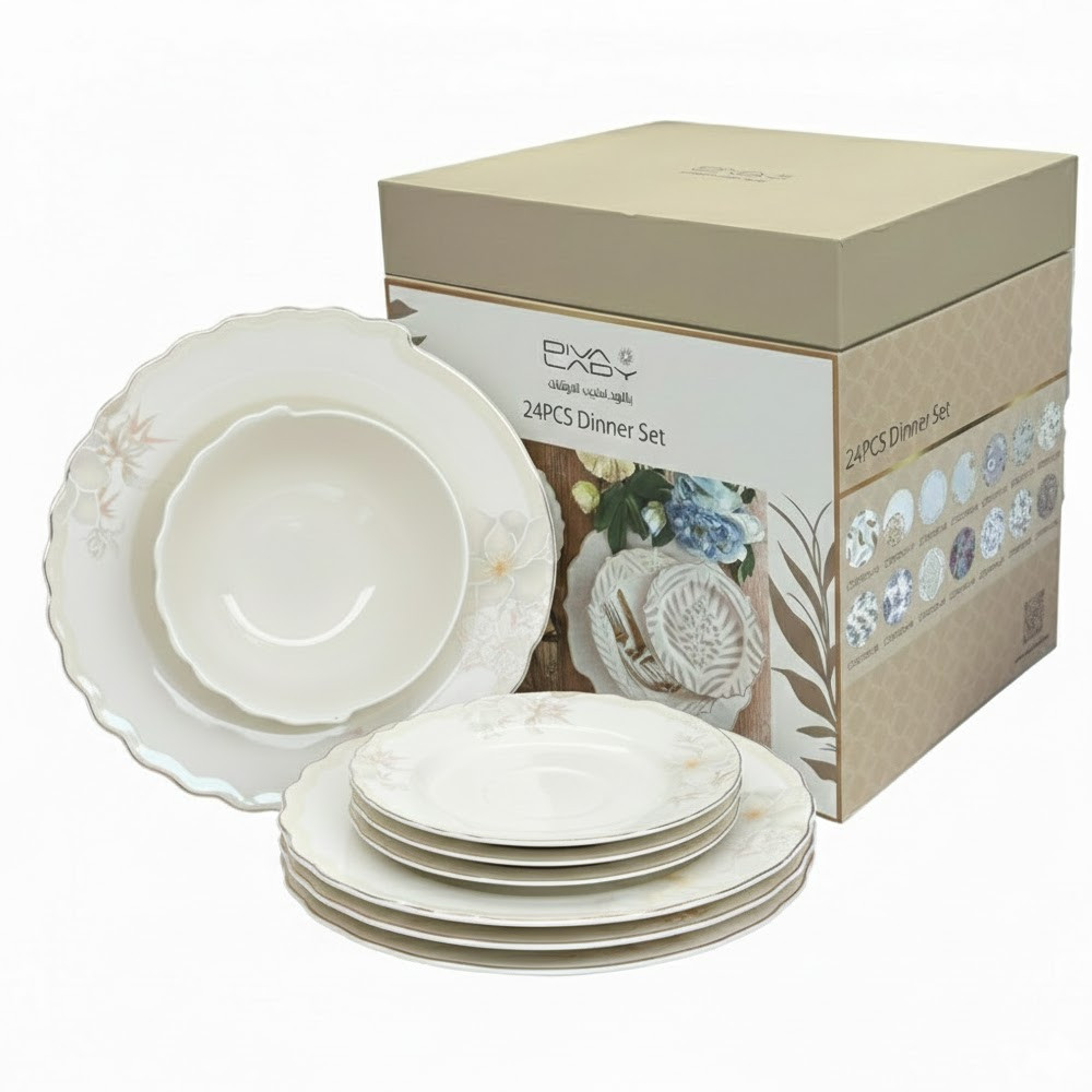 ✨ طقم أطباق المائدة الفاخر 24 قطعة – ديفا ليدي | جودة راقية وتصميم ملكي