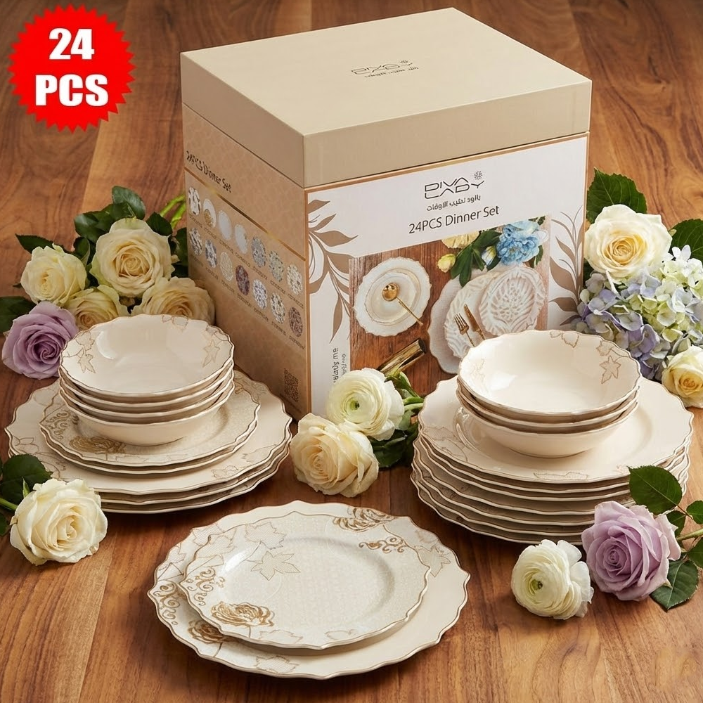 طقم أطباق مائدة فاخر 24 قطعة