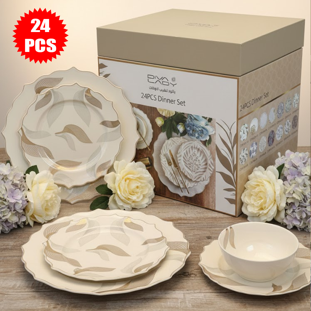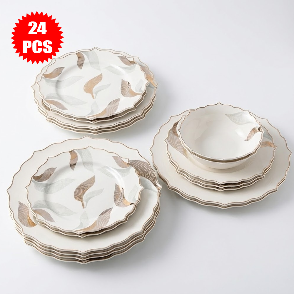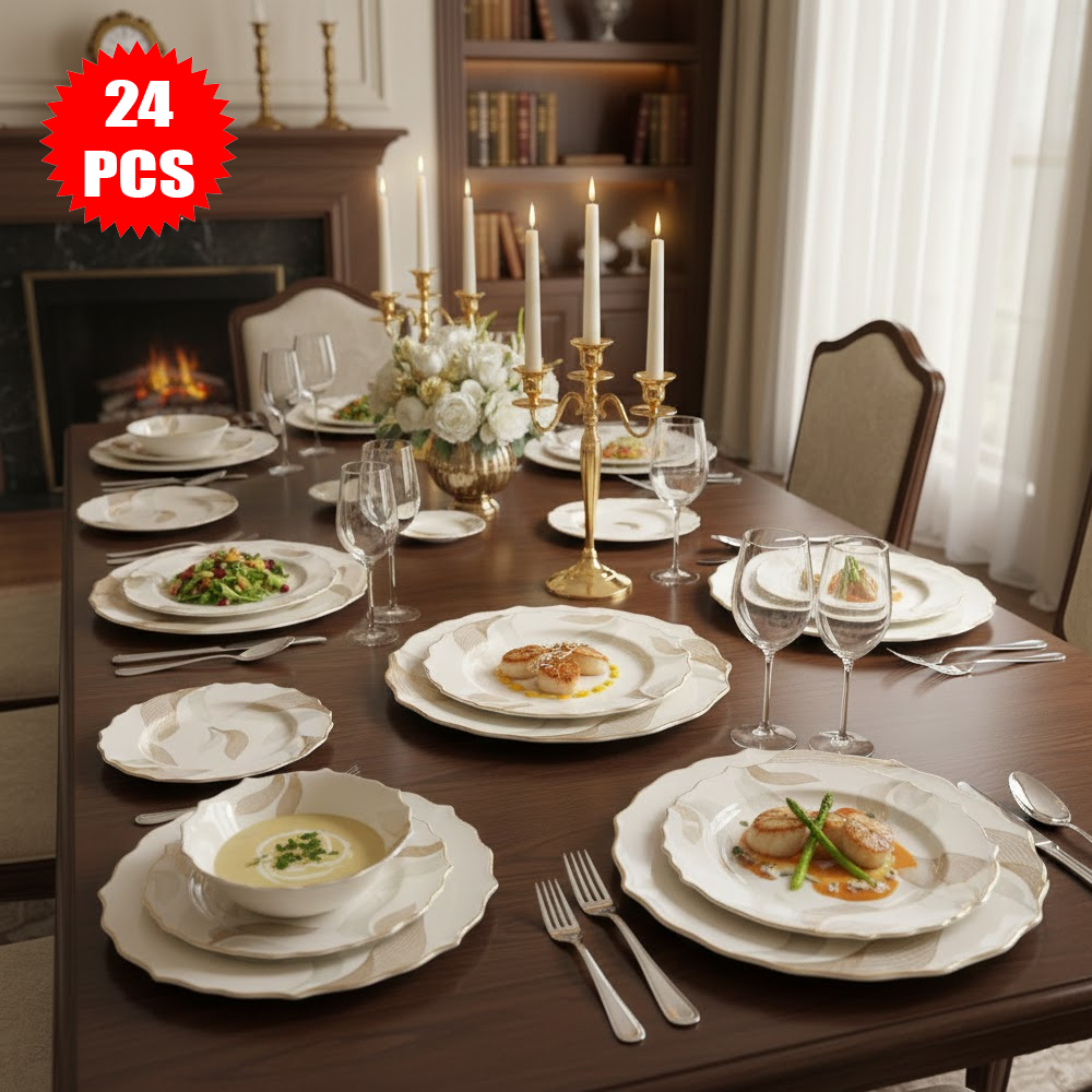 ✨ طقم أطباق المائدة الفاخر 24 قطعة – ديفا ليدي | جودة راقية وتصميم ملكي