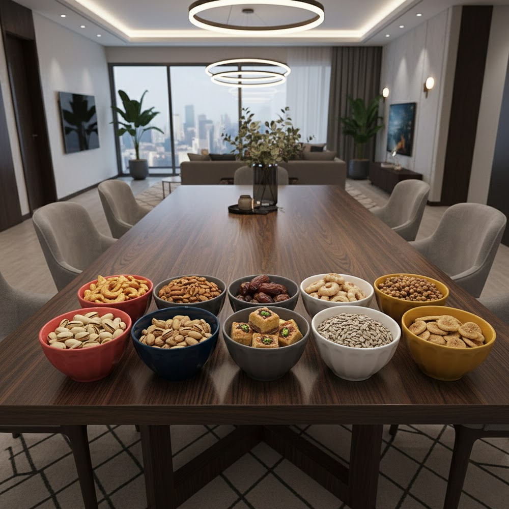 التصميم العملي بالحجم المناسب يجعل هذه الأوعية مثالية لتقديم المكسرات، الحلويات، التمر، المقبلات، الصلصات، أو الوجبات الخفيفة.