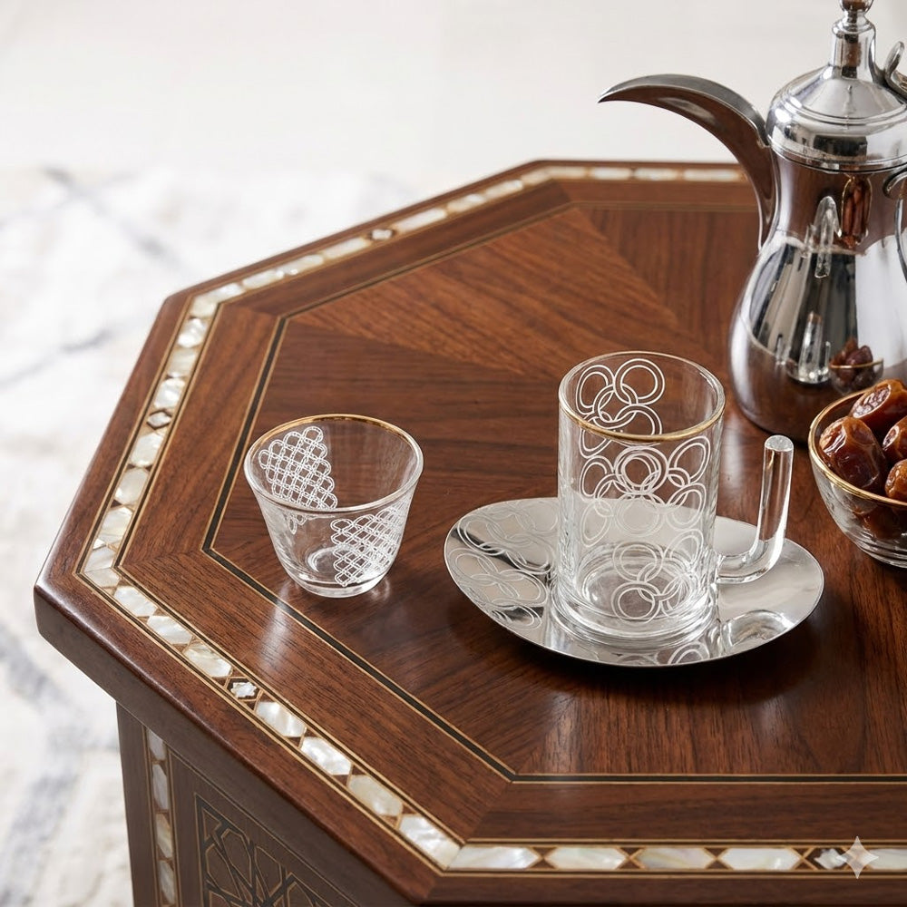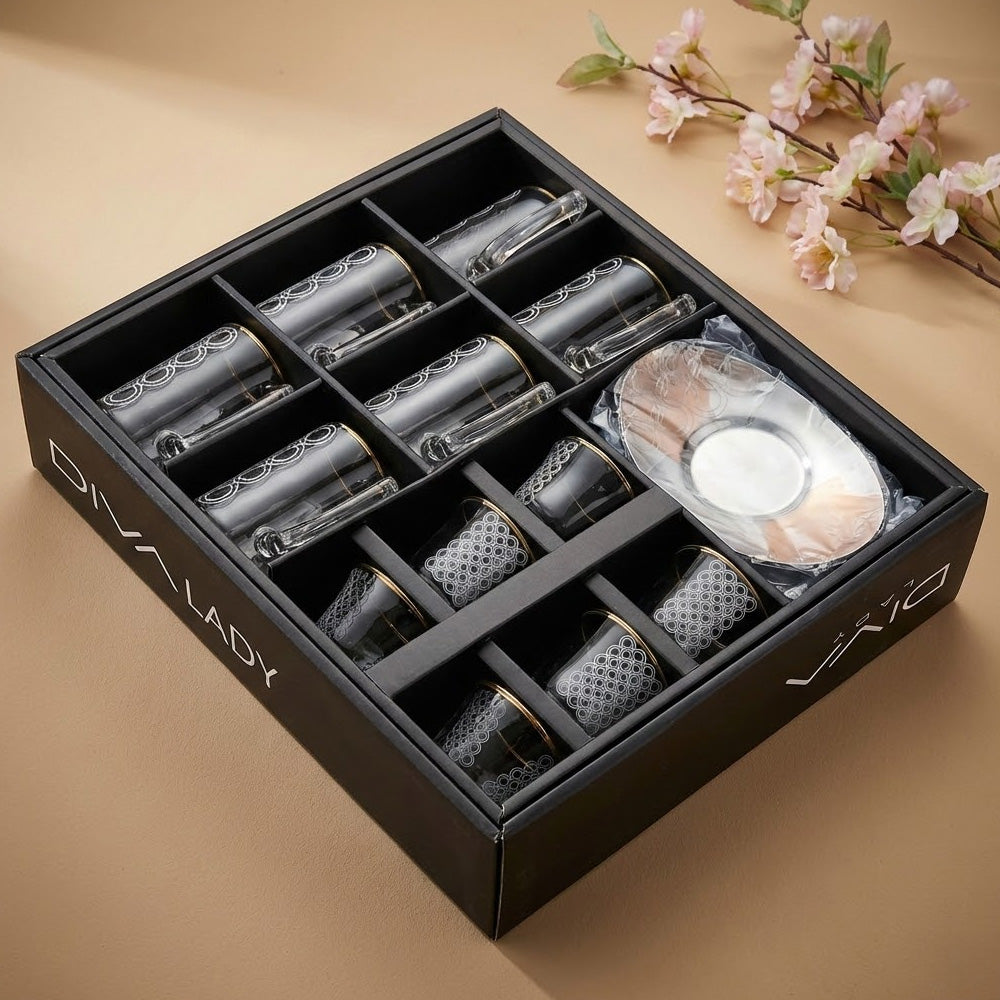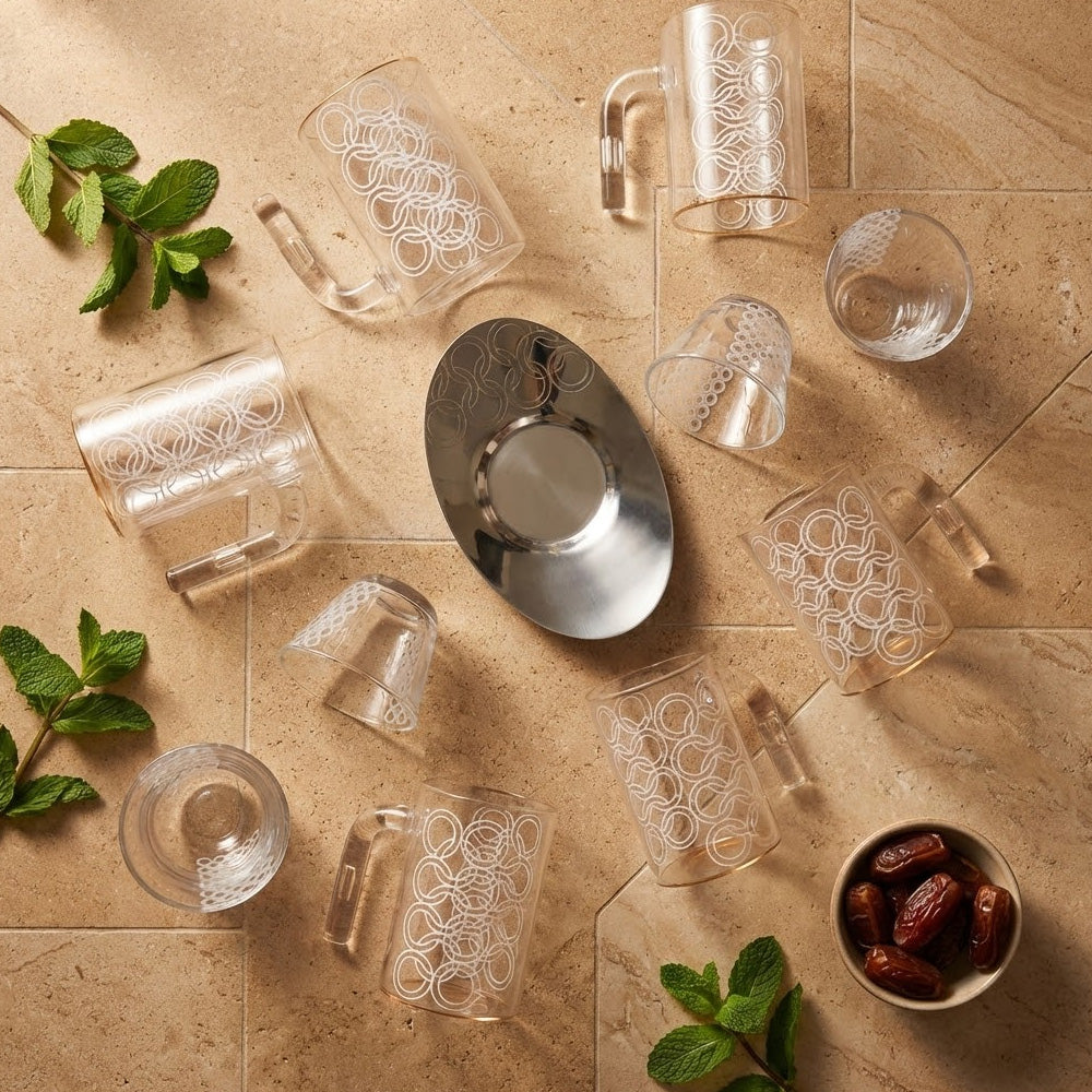 طقم ضيافة أنيق بتصميم عصري ولمسة فاخرة، مثالي لتقديم القهوة العربية، القهوة التركية، أو المشروبات الساخنة في المناسبات والضيافة اليومية.