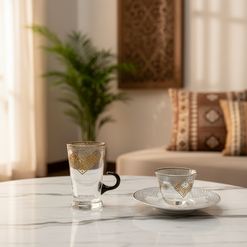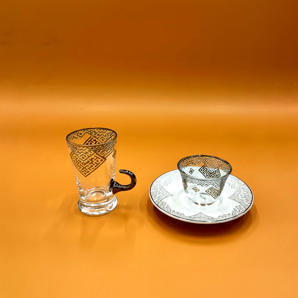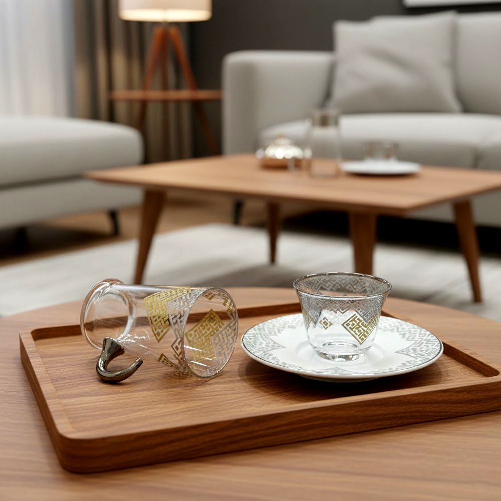 طقم ضيافة أنيق بتصميم عصري ولمسة فاخرة، مثالي لتقديم القهوة العربية، القهوة التركية، أو المشروبات الساخنة في المناسبات والضيافة اليومية.