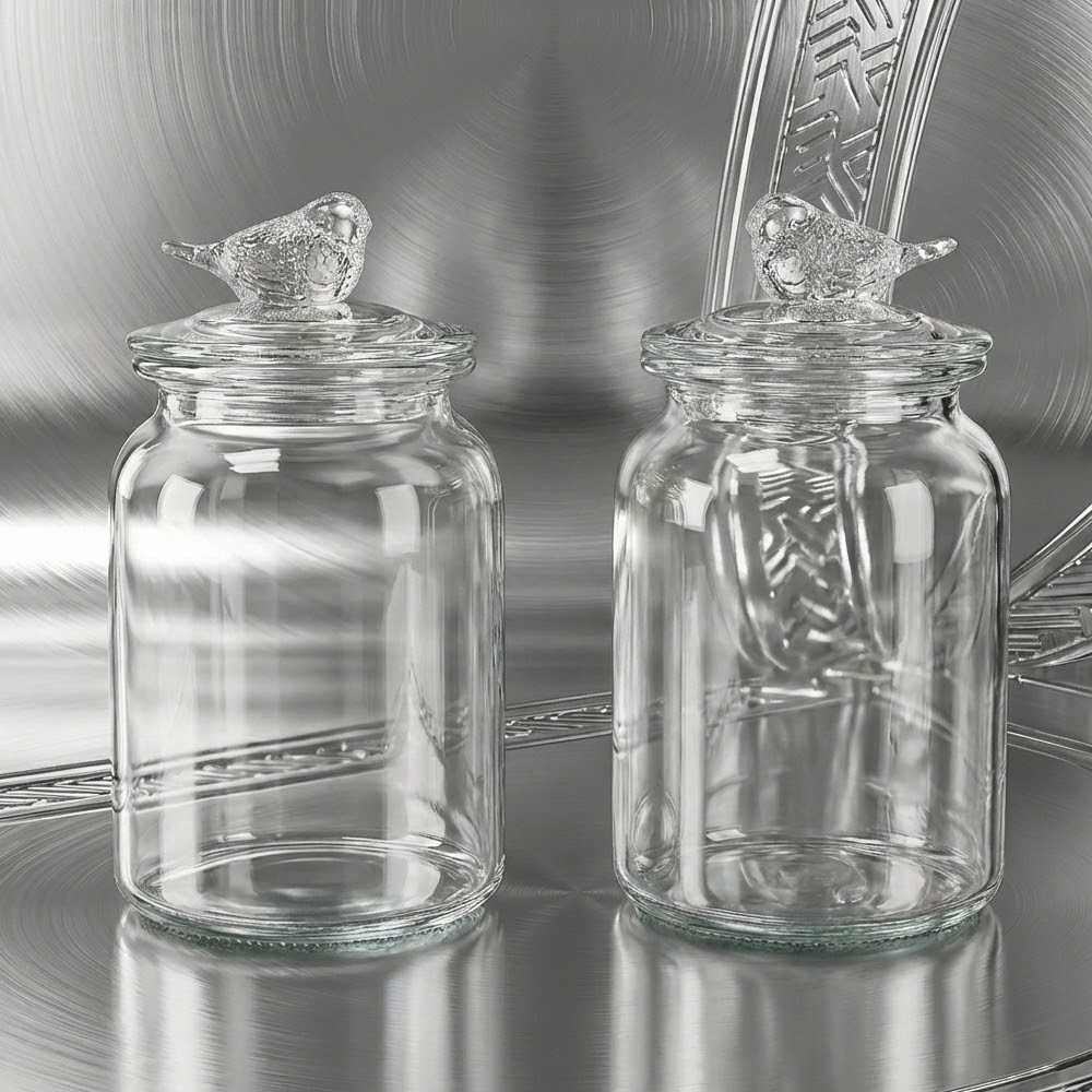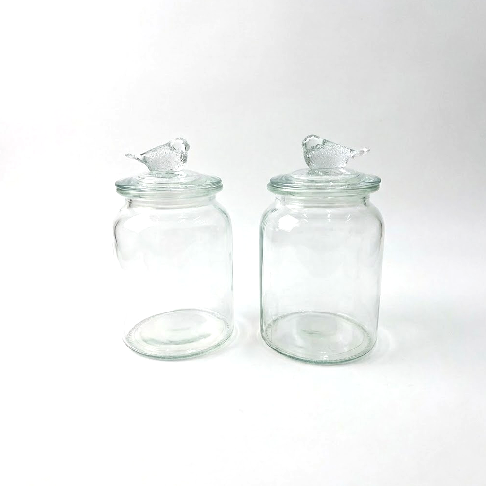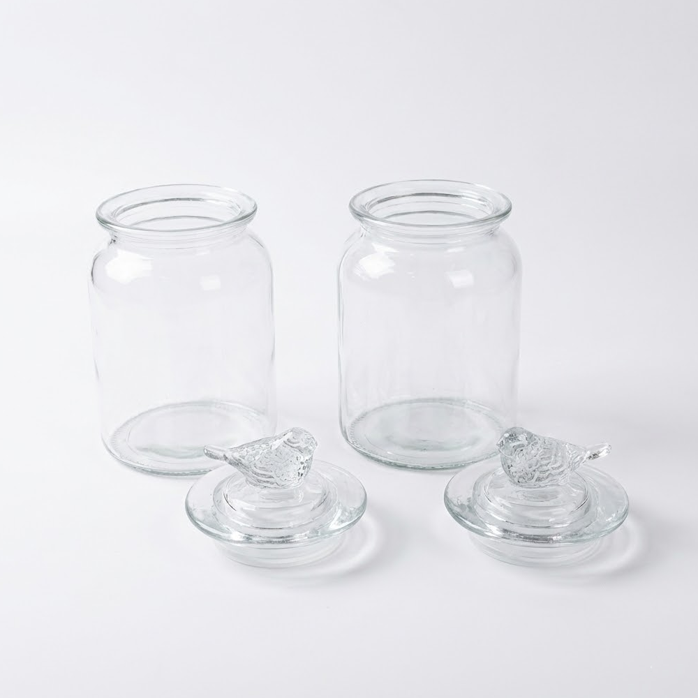 التصميم: برطمانات زجاجية مع غطاء مزخرف بطائر