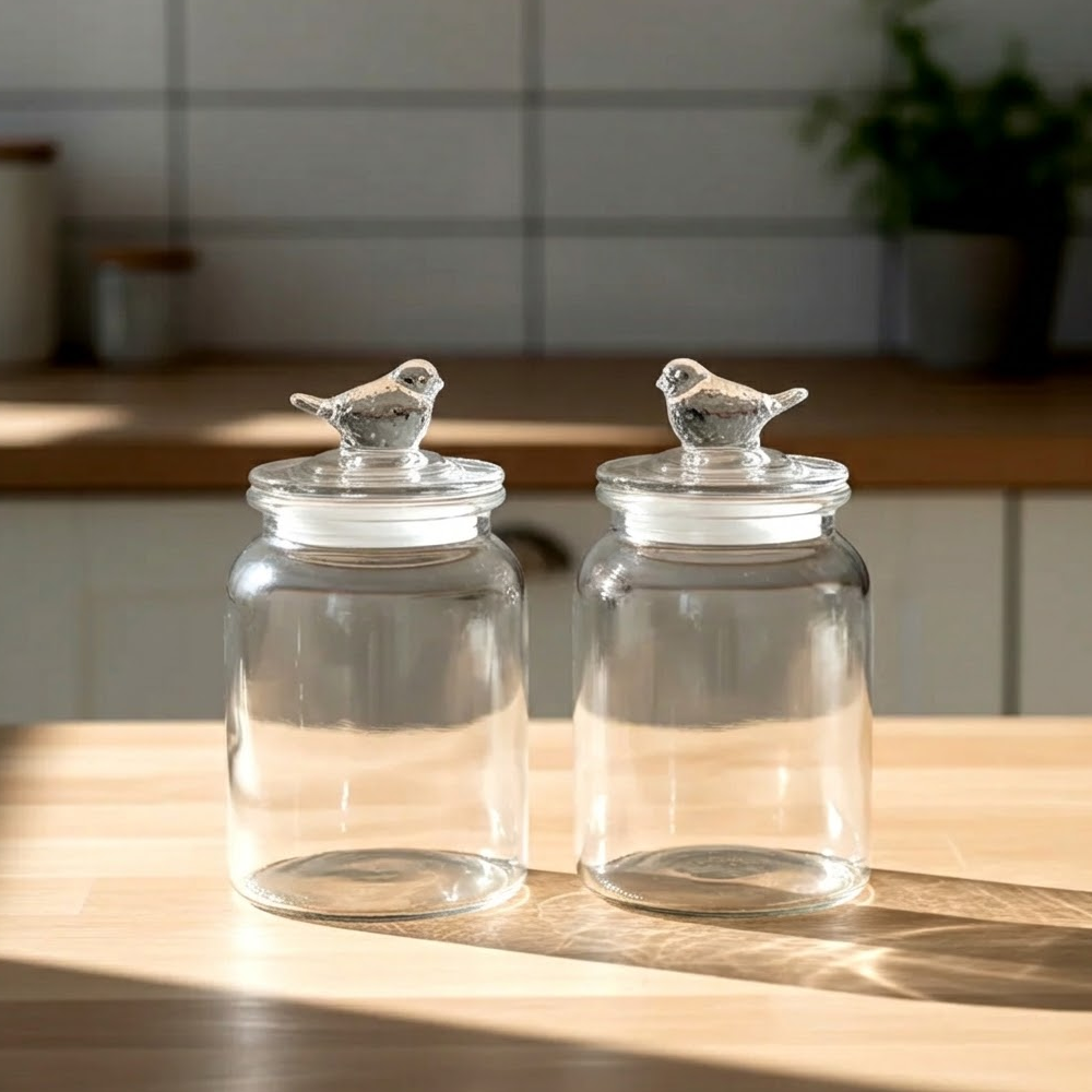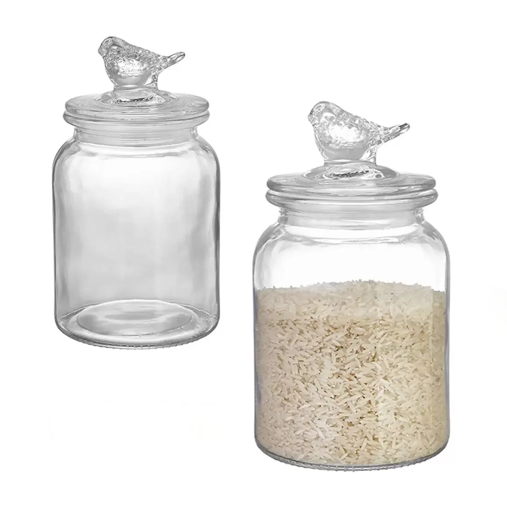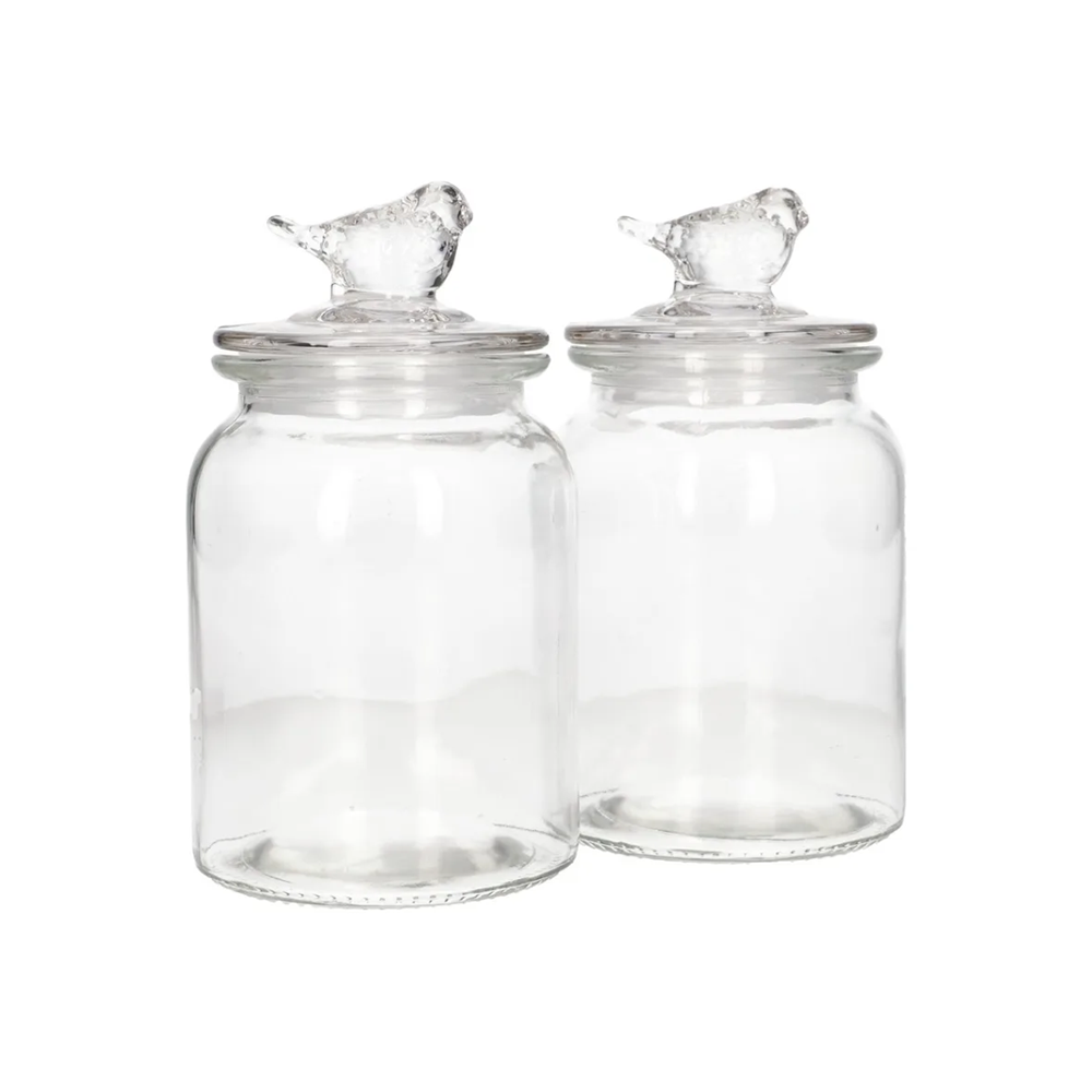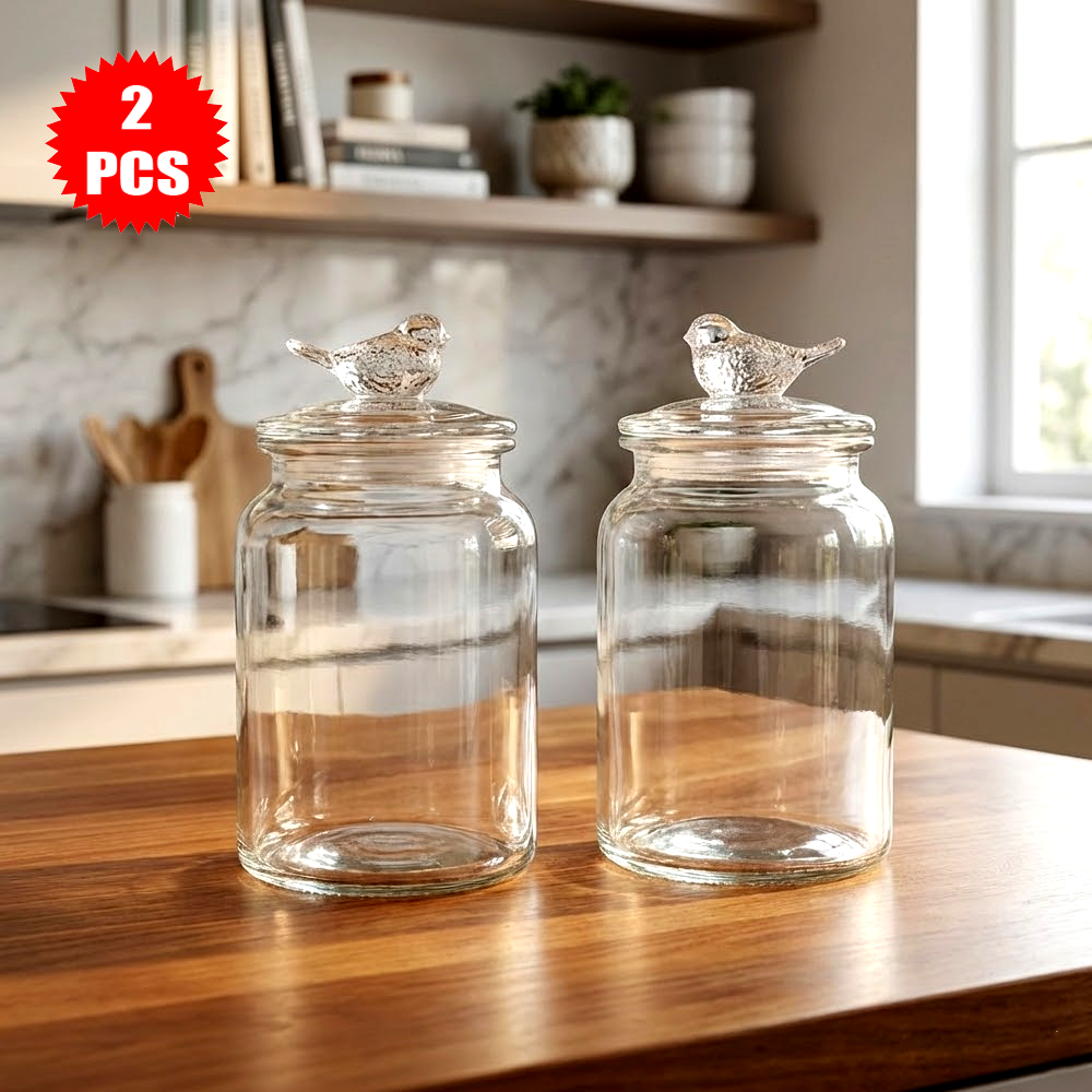 طقم برطمانات تخزين زجاجية بغطاء طائر – قطعتان بتصميم أنيق للمطبخ والديكور