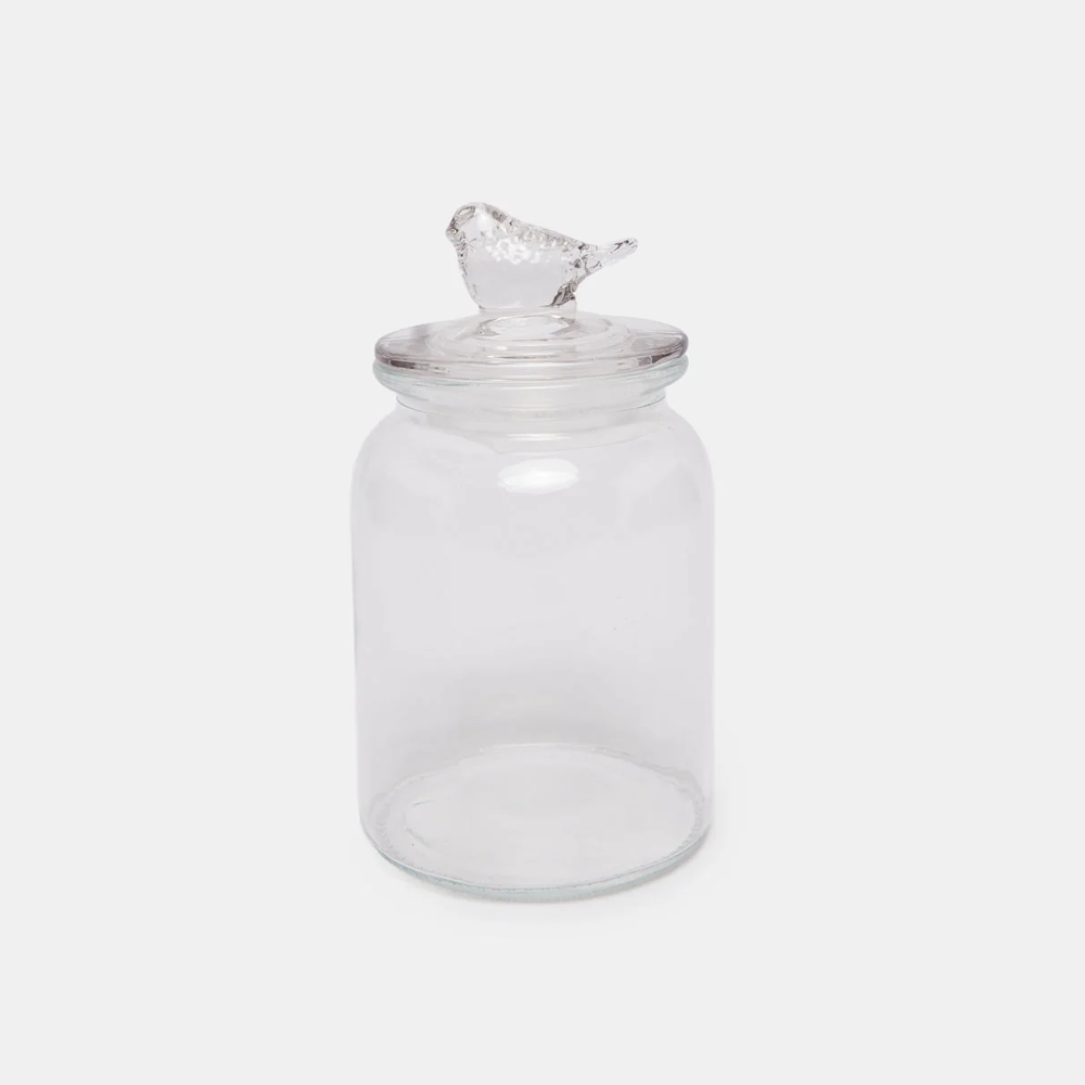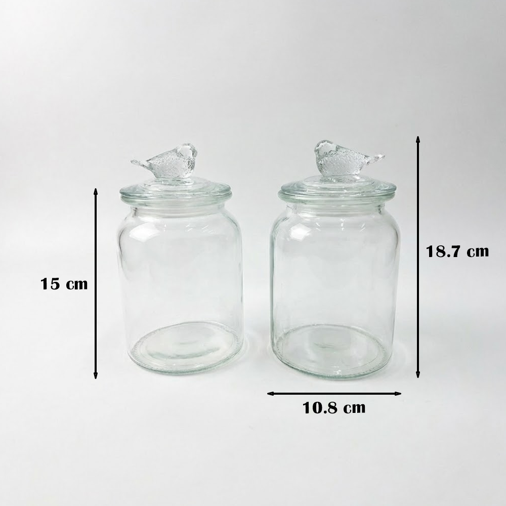 مصنوعة من زجاج شفاف عالي الجودة، تتيح لك رؤية المحتوى بسهولة، مع غطاء زجاجي محكم مزخرف بشكل طائر يضفي لمسة فنية مميزة.