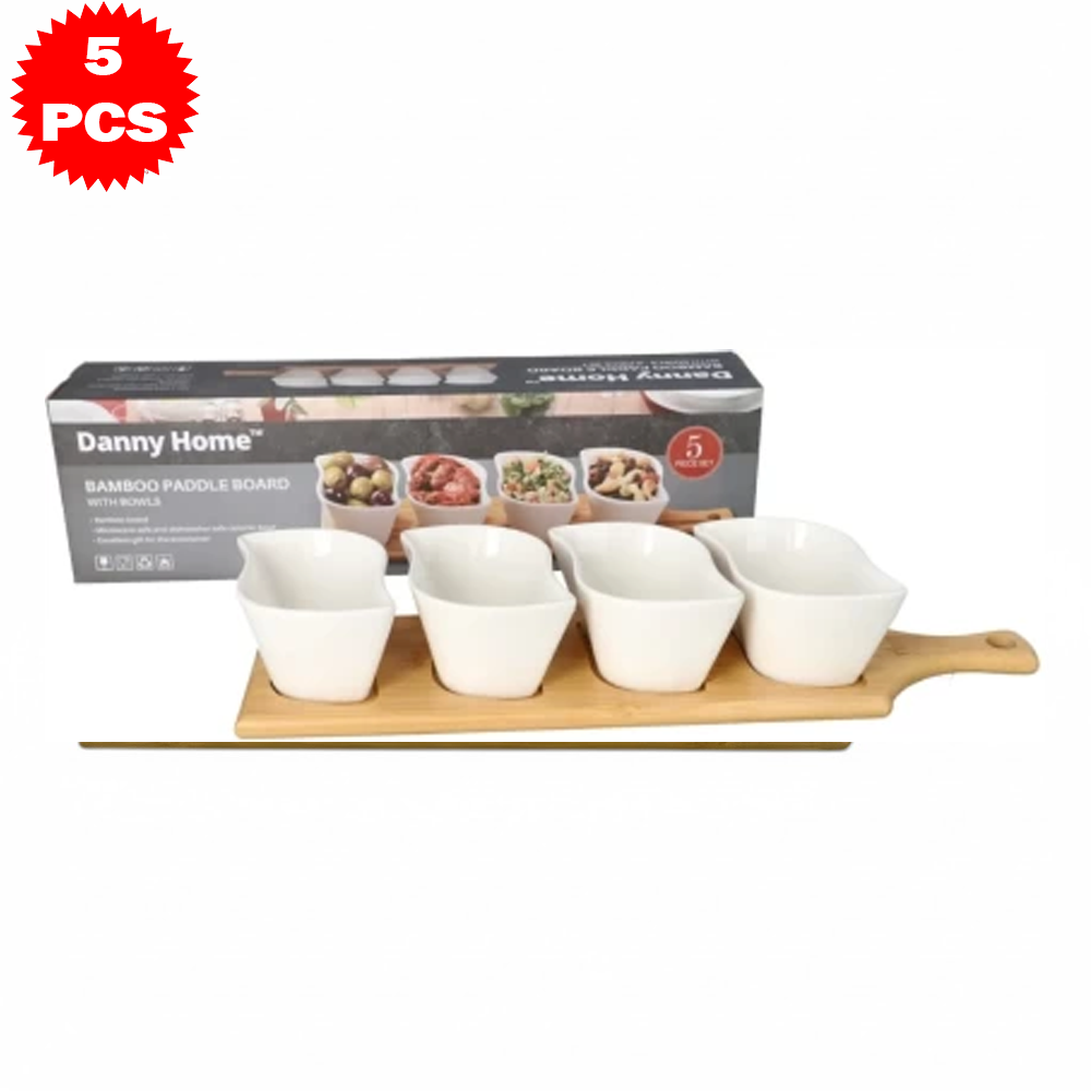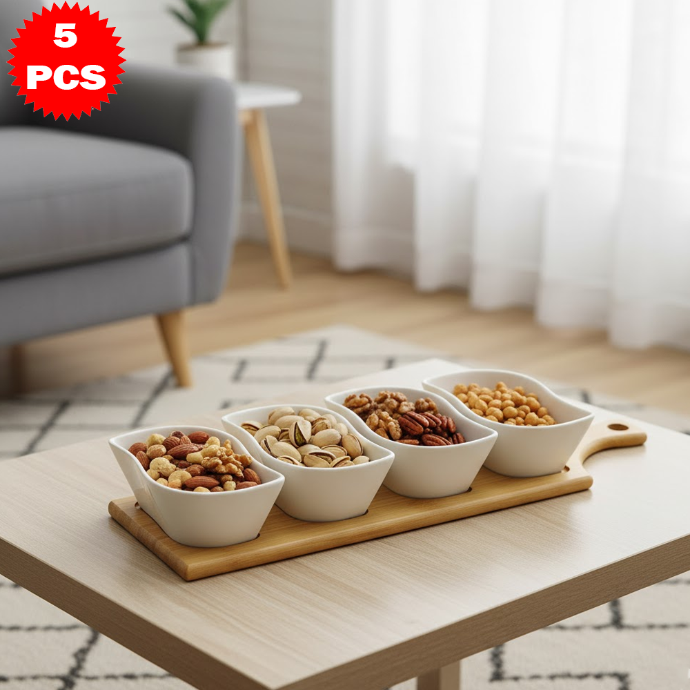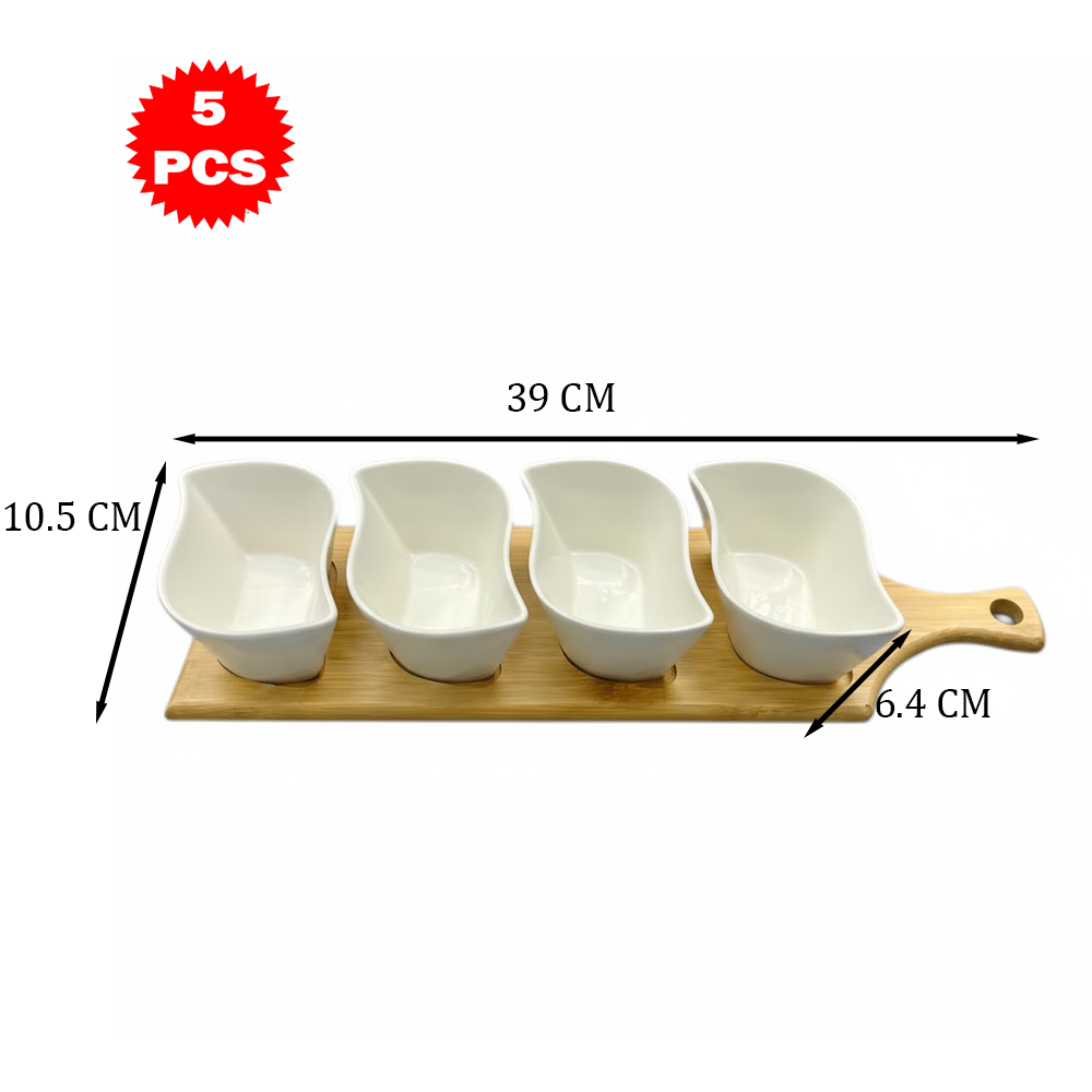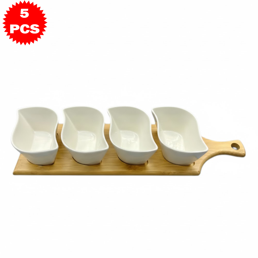 طقم تقديم سيراميك متمايل مع قاعدة خشب