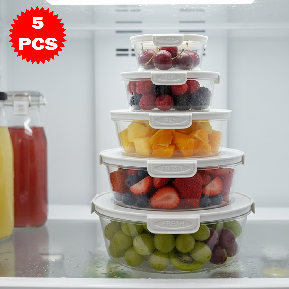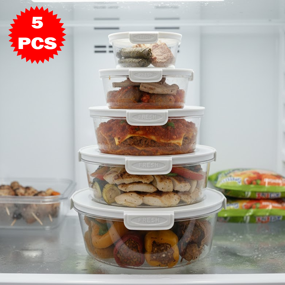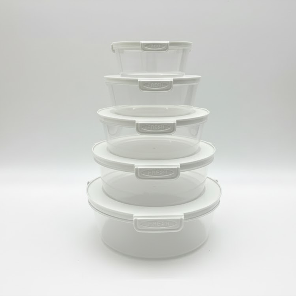 5 علب دائرية محكمة الإغلاق + 5 أغطية مطابقة