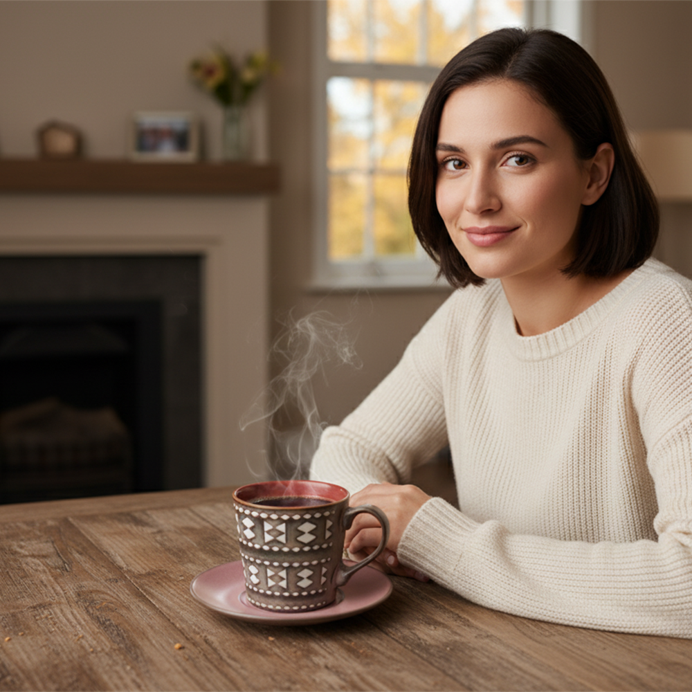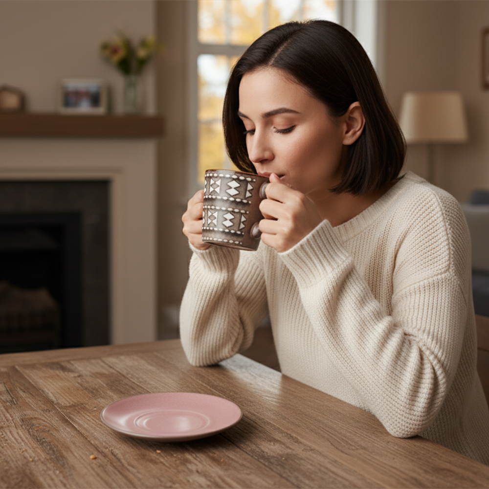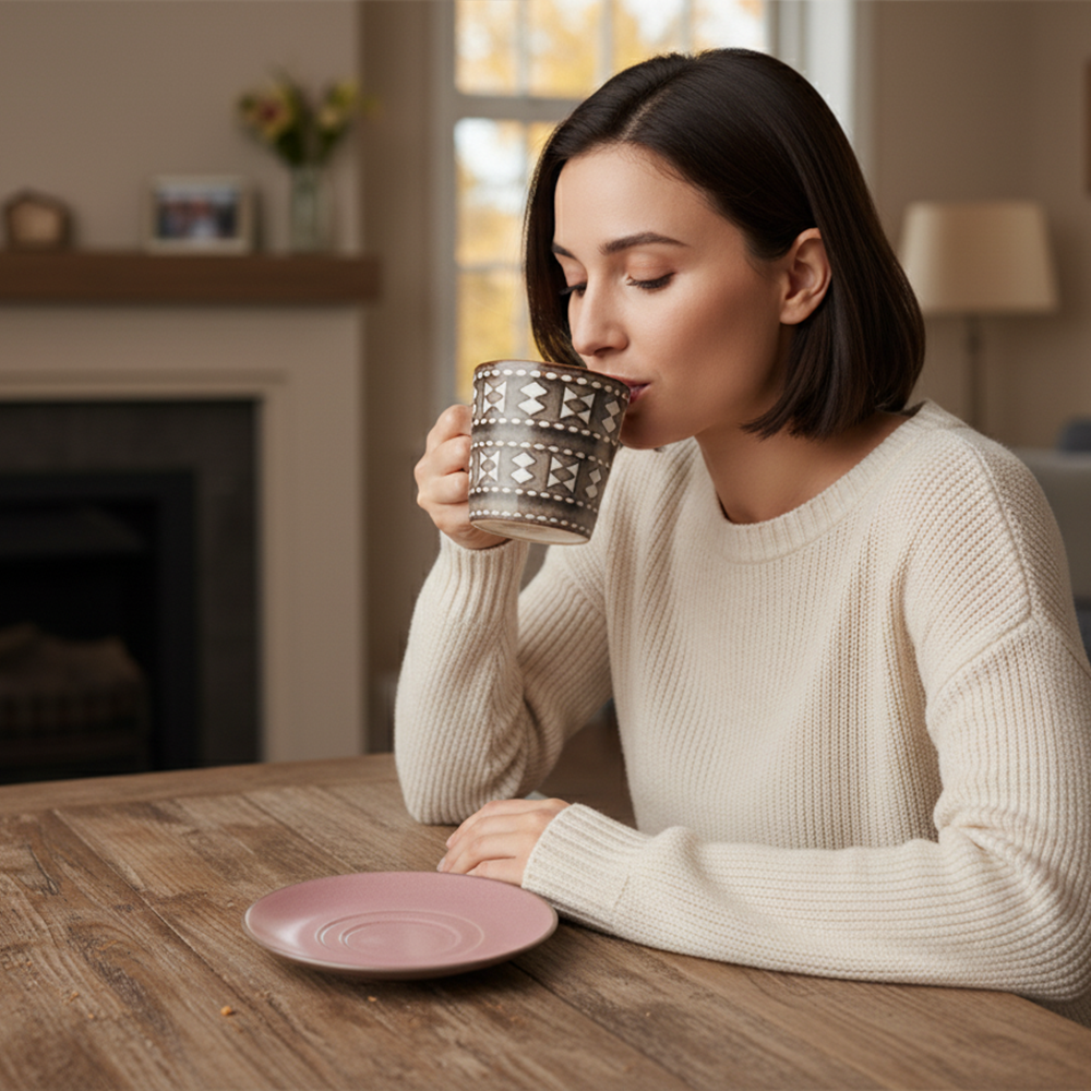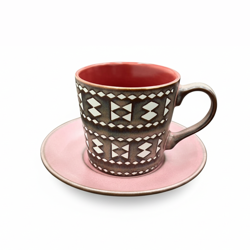 يجمع بين اللون الوردي الجذاب والنقشة البنية ذات الطابع العصري ليمنح طاولة القهوة أو الشاي لمسة من التميز والأناقة.
