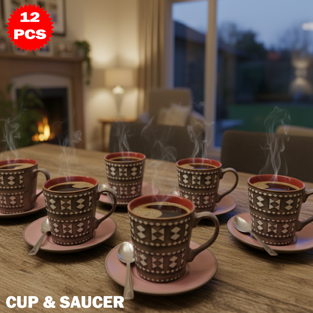 📦 المحتوى: 6 فناجين + 6 صحون (إجمالي 12 قطعة)