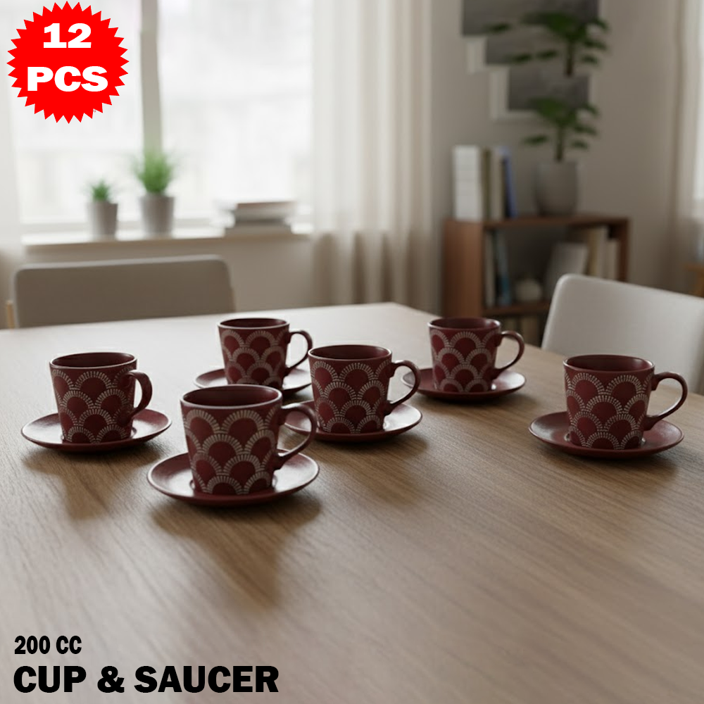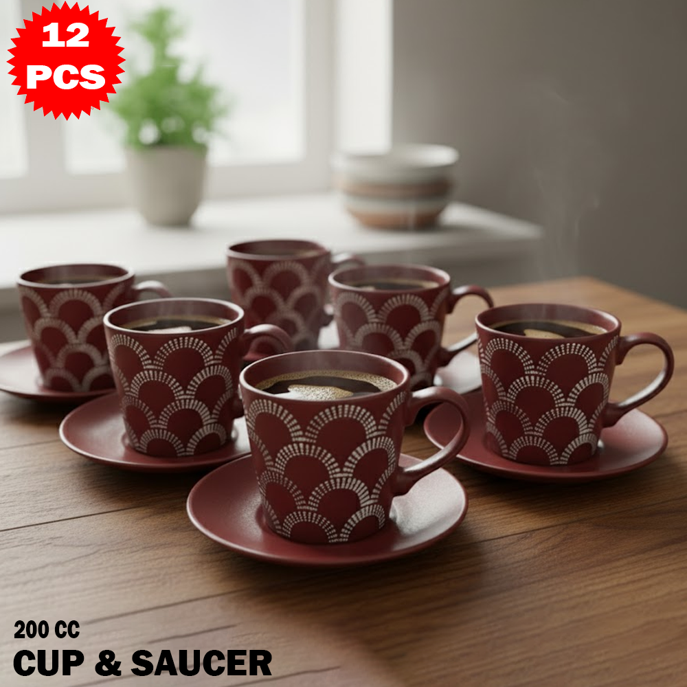 📦 المحتوى: 6 فناجين + 6 صحون (إجمالي 12 قطعة)