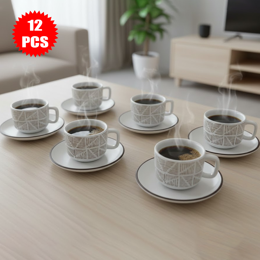طقم فناجين وصحون قهوة سيراميك 12 قطعة